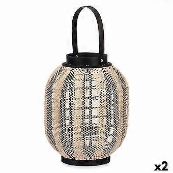 Lantern Gift Decor Black Beige Wood Cloth Glass Lantern 27 x 32 x 27 cm With handle (2 Units)