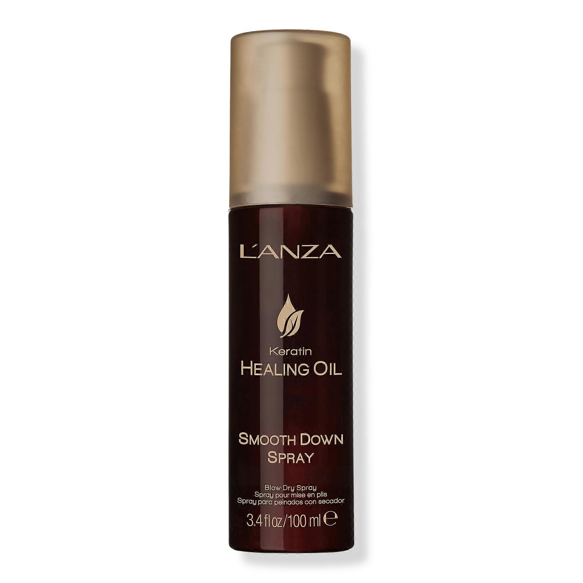 L'ANZA Keratin Healing Oil Smooth Down Spray is designed to provide smooth, sleek blowouts while reducing frizz and flyaways. This professional-quality product delivers a glossy finish without feeling heavy or oily. It also offers extreme heat protection, reduces drying time, and minimizes surface friction for effortless styling. Ingredients Abyssinian flower oil: Adds shine and softness. Acai fruit oil: Rich in antioxidants to prevent damage and reduce friction. Coffee seed oil: Provides natural UV and environmental protection. Natural ceramides: Improves hair's flexibility. Babassu kernel oil: Enhances hair's elasticity. Next-generation keratin: Restores shine, body, and bounce. Formulated Without: Sulfates Gluten Sodium chloride Parabens Suggested Use Spray evenly onto clean, damp hair. Brush through to distribute the product evenly. Blow-dry hair or style as desired for a smooth, polished finish. Precautions: Highly flammable. Avoid spraying on open flames, sparks, or hot surfaces. Keep away from heat sources and out of reach of children. Avoid inhalation, contact with eyes, or application to broken skin.