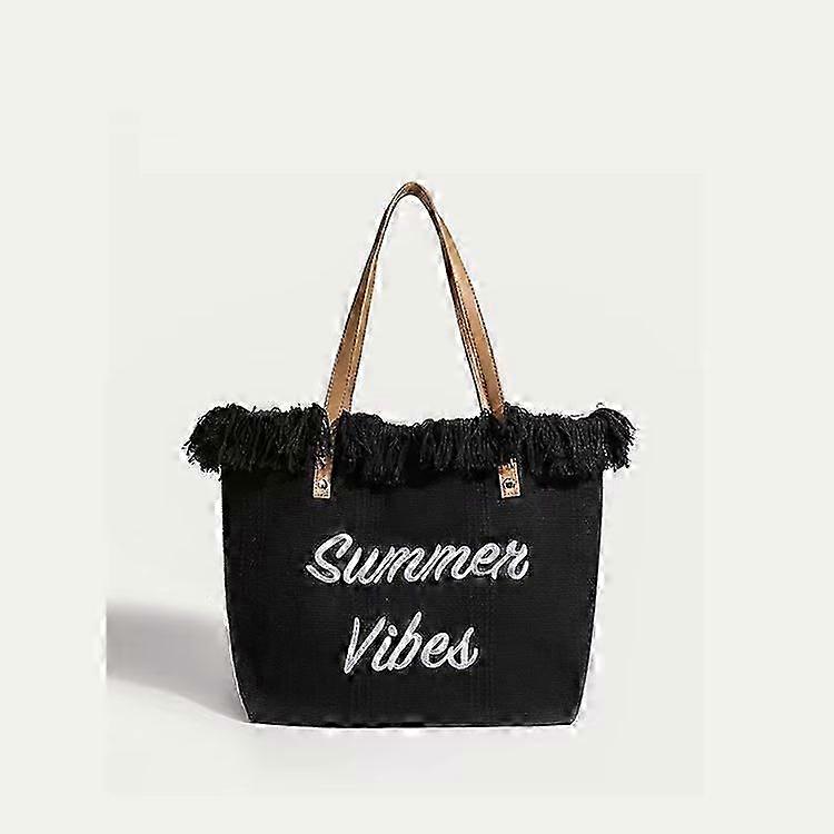 Large Capacity Bag Canvas Bag Embroidery Letter Tote Handbag Tote Women Beach Bag Shoulder Woven Bag Shopping Totes