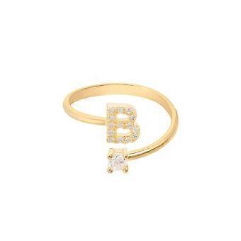 Latelita 女士 925 纯银首字母戒指,镶嵌 22K 金和白色立方氧化锆 - 女士平均尺寸 6 (M)