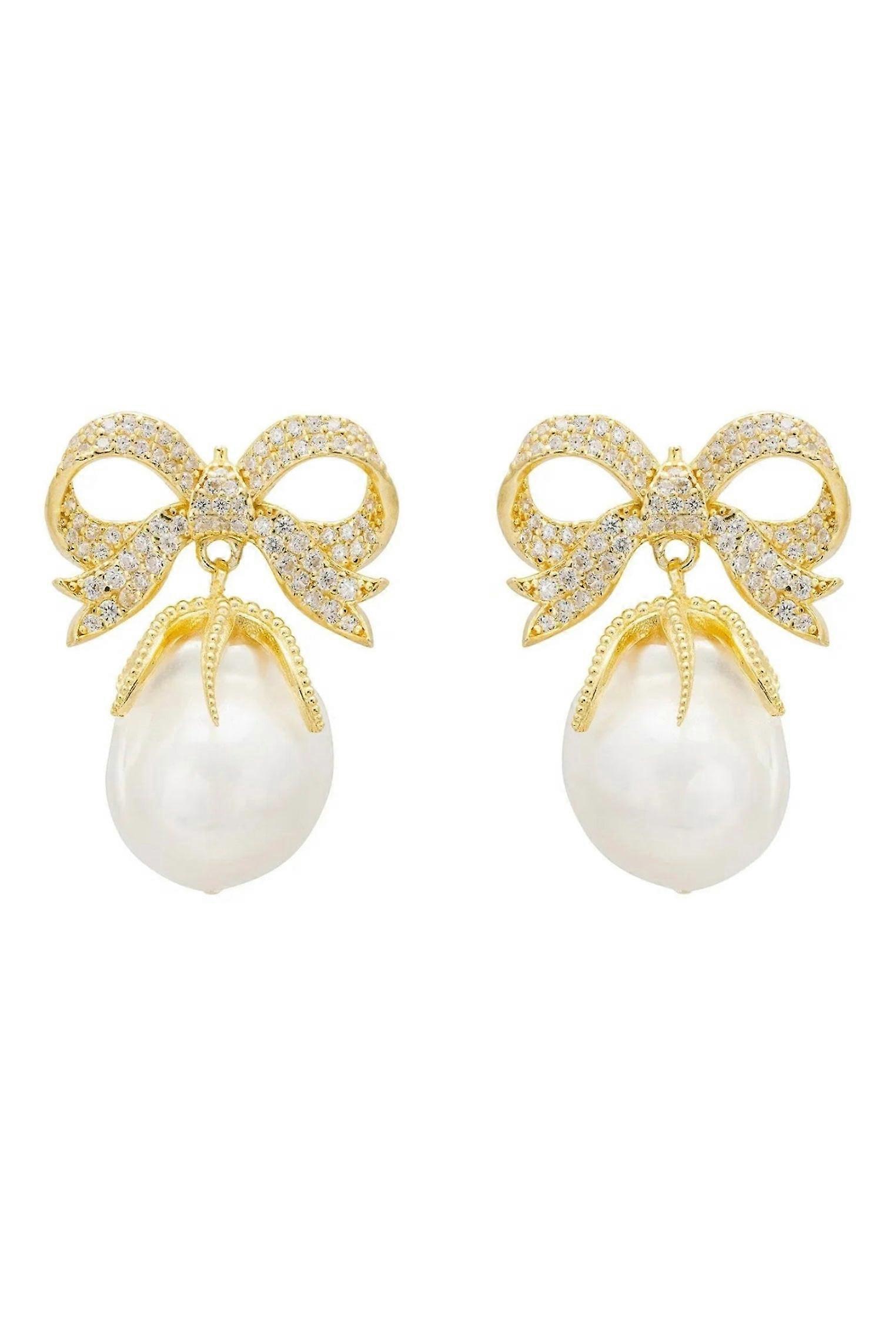Latelita Baroque Pearl Ribbon and Bows Drop Earrings in 18ct Gold for Women