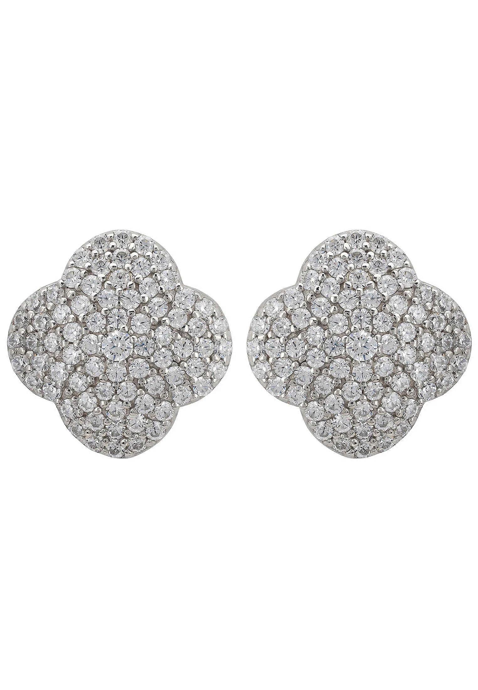 Latelita Byzantine Clover Flower Stud Earrings in Sterling Silver for Women