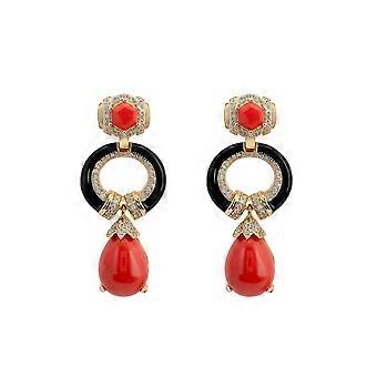 Latelita Clara 蝴蝶结珊瑚珐琅黄金吊坠耳环 - 925 纯银,珊瑚宝石和氧化锆装饰