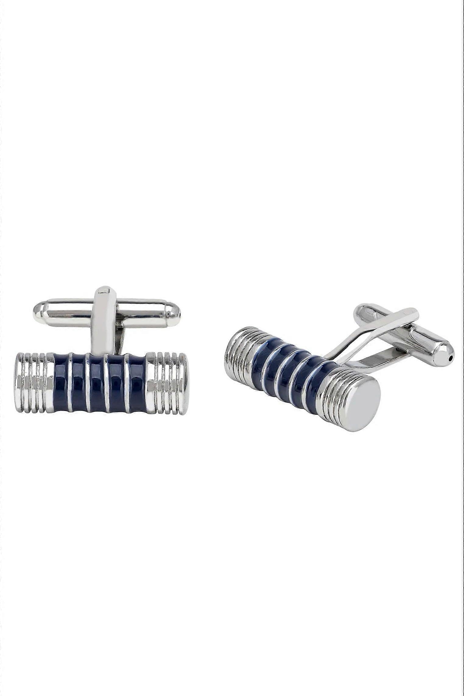Latelita Cylindrical Blue Black Enamel Cufflinks in Silver for Men