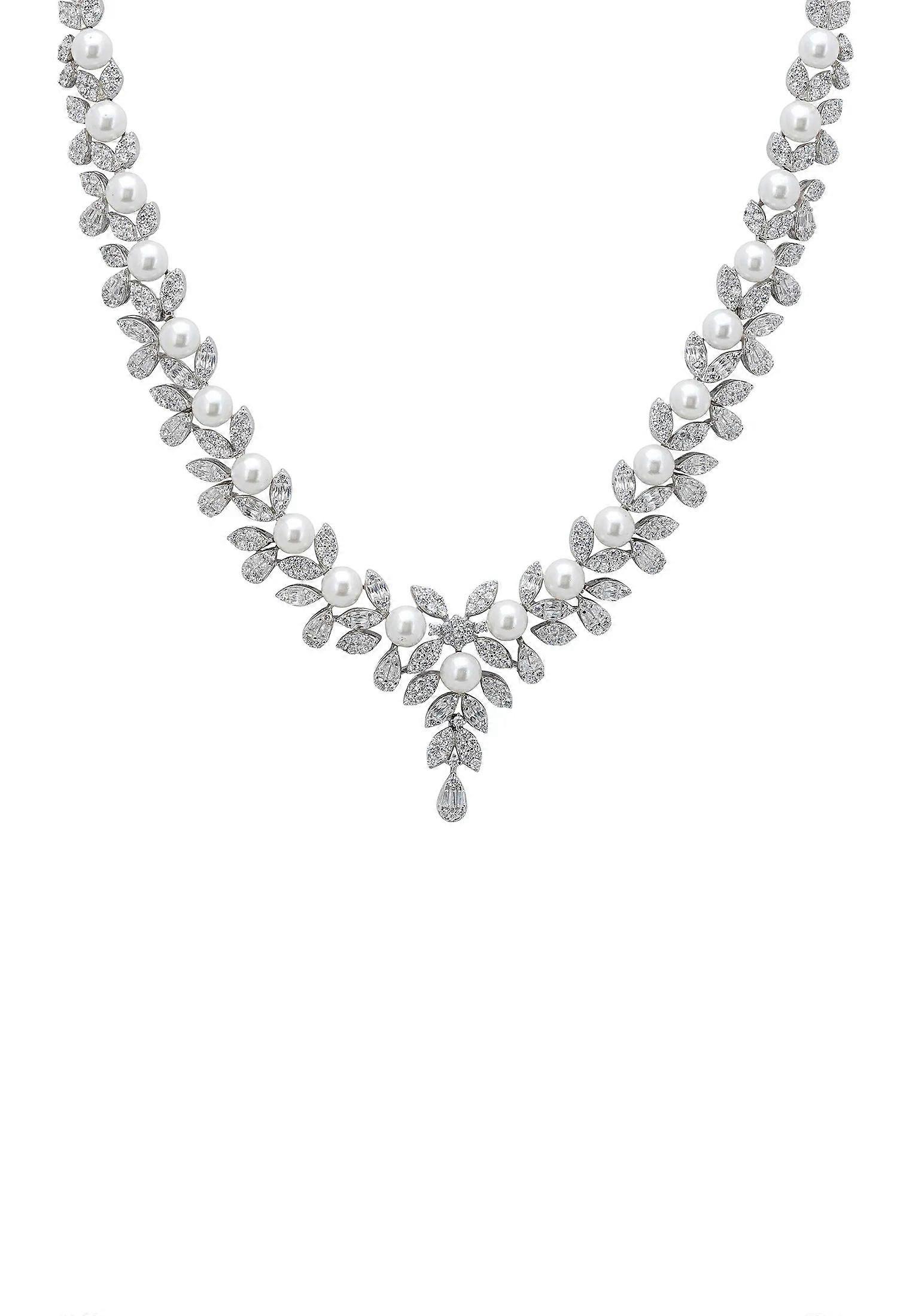Latelita Empress Pearl Petal Statement Necklace for Women - 43 cm Sterling Silver