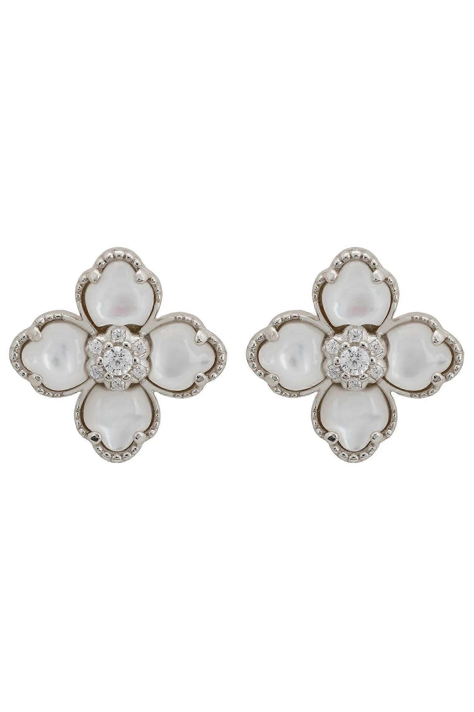 Latelita Flower Clover Mother of Pearl Stud Earrings in Silver for Women