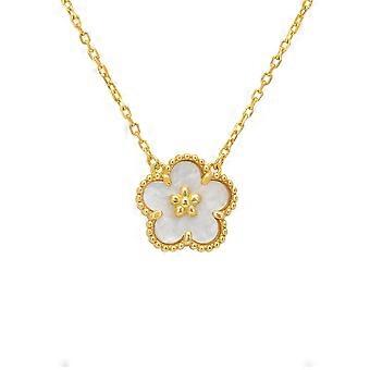Latelita Flower Clover Necklace in Mother of Pearl Gold for Women - 925 Sterling Silver with 18ct Gold Plating - Adjustable 40-45cm Chain