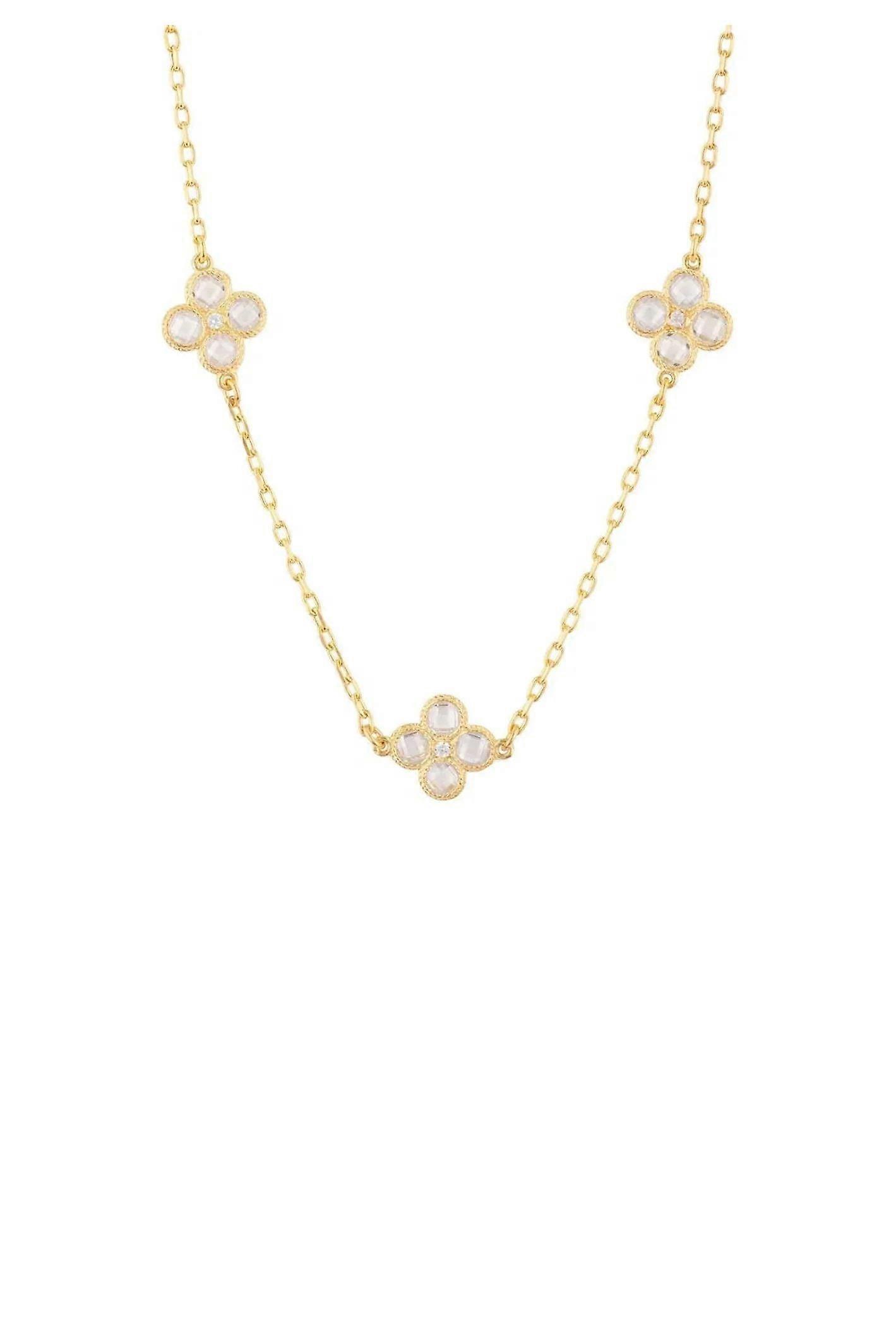 Latelita Flower Clover Triple Choker Necklace Gold for Women, 22ct Gold Plated 925 Sterling Silver, Adjustable 40-45cm Length, Cubic Zirconia Stones