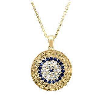 Latelita Greek Evil Eye Disc Pendant Necklace Gold for Women, 925 Sterling Silver Dipped in 18ct Gold, Blue and White Cubic Zirconia, Adjustable Chain