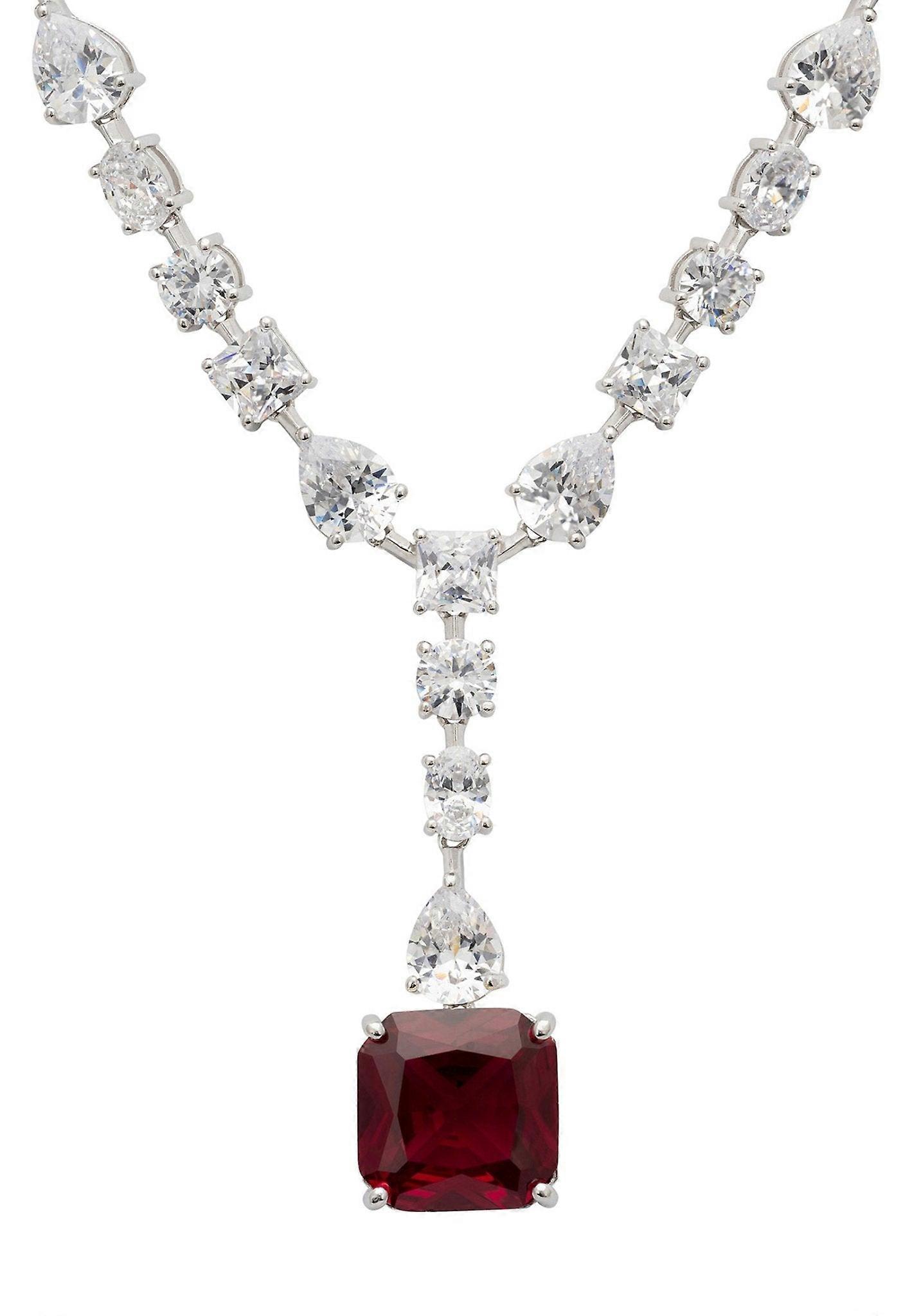 Latelita Penelope Ruby Statement Necklace - 925 Sterling Silver with Lab-Created Ruby and Simulated Diamonds - 45cm Length - Female