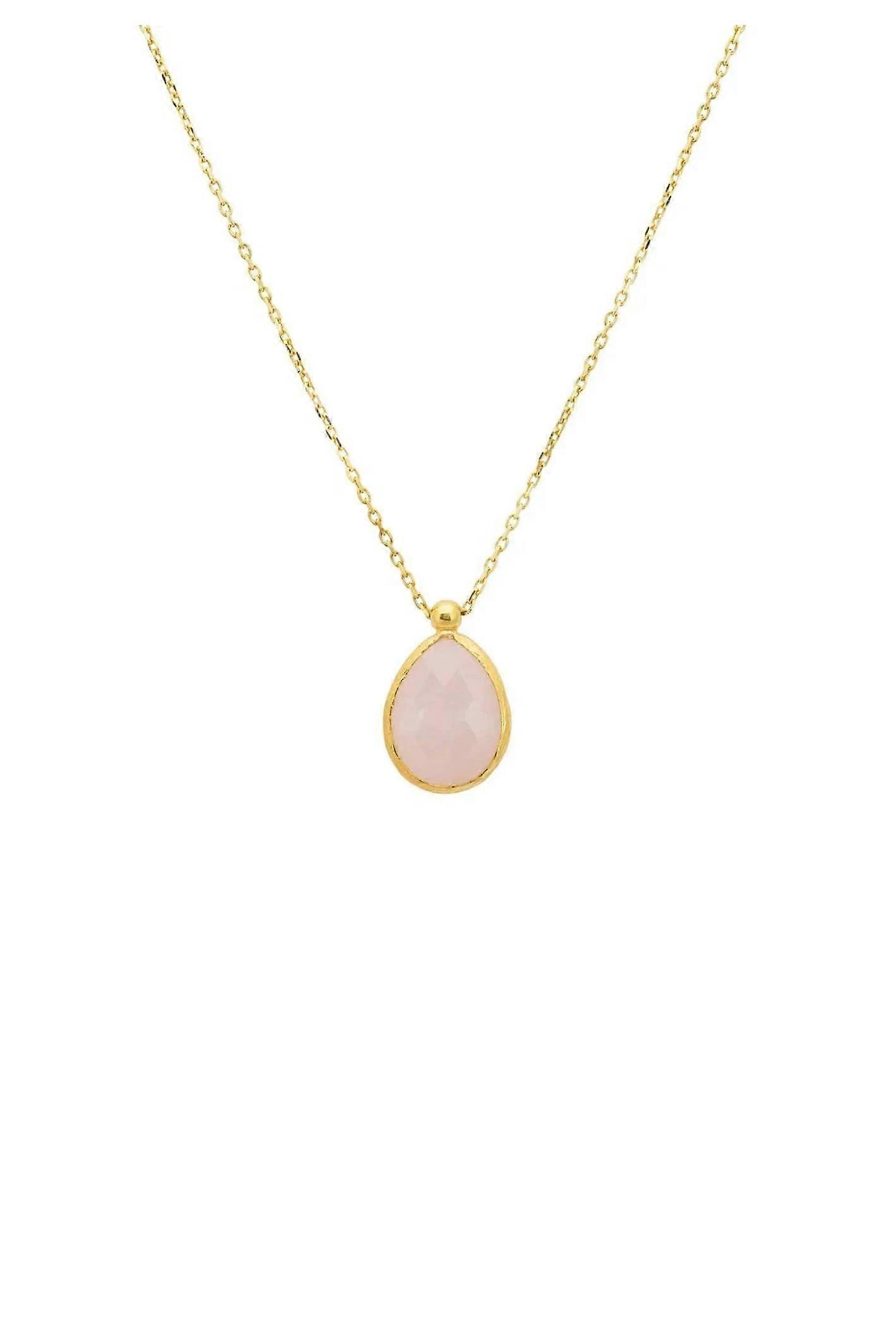 Latelita Petite Drop Necklace with Rose Quartz Stone in 22ct Gold Dipped Sterling Silver for Women