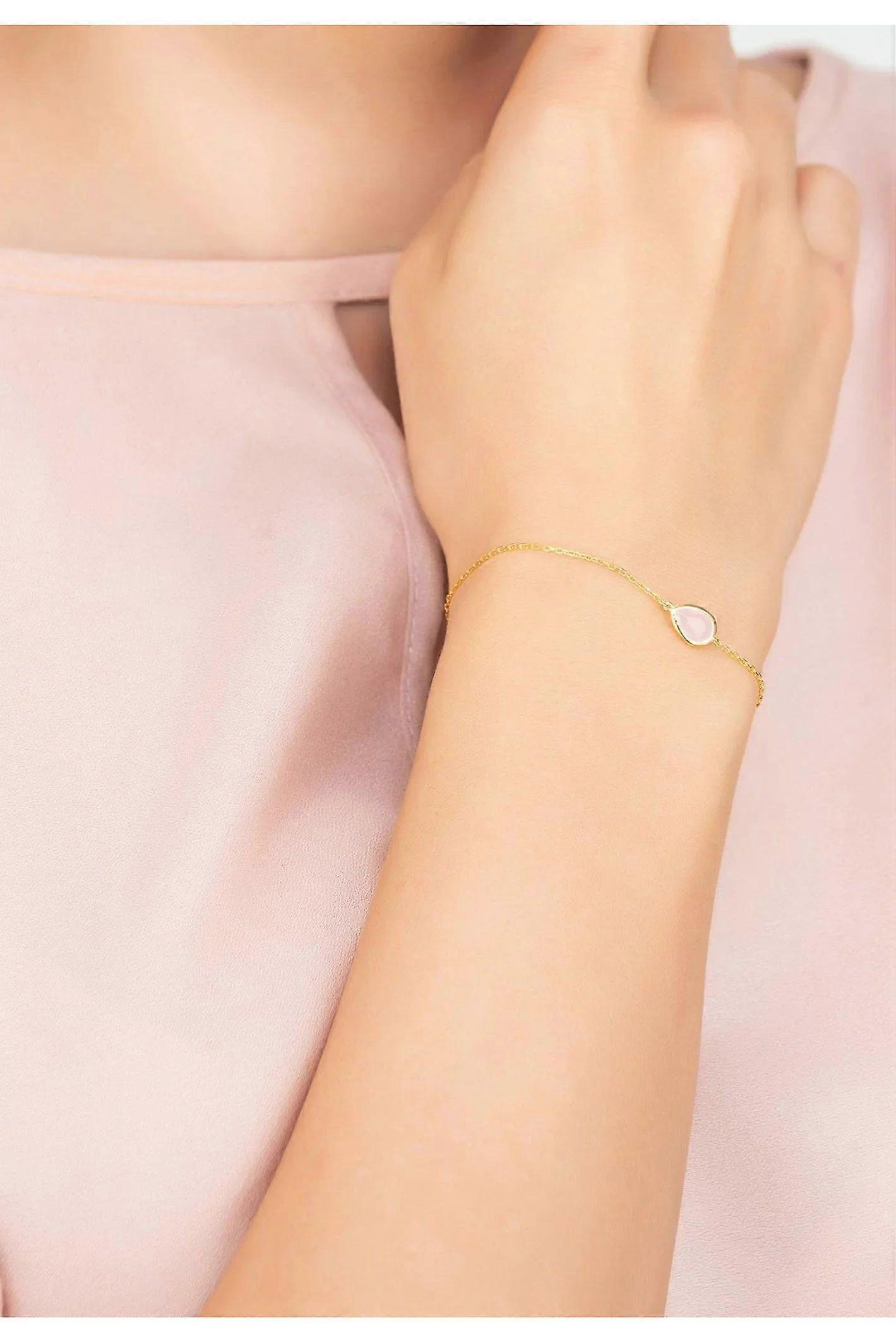 Latelita Pisa Mini Teardrop Bracelet for Women: 15-17.5cm Gold Rose Quartz Bracelet with Lobster Clasp and Size Adjuster - 925 Sterling Silver and 22ct Gold Dipped