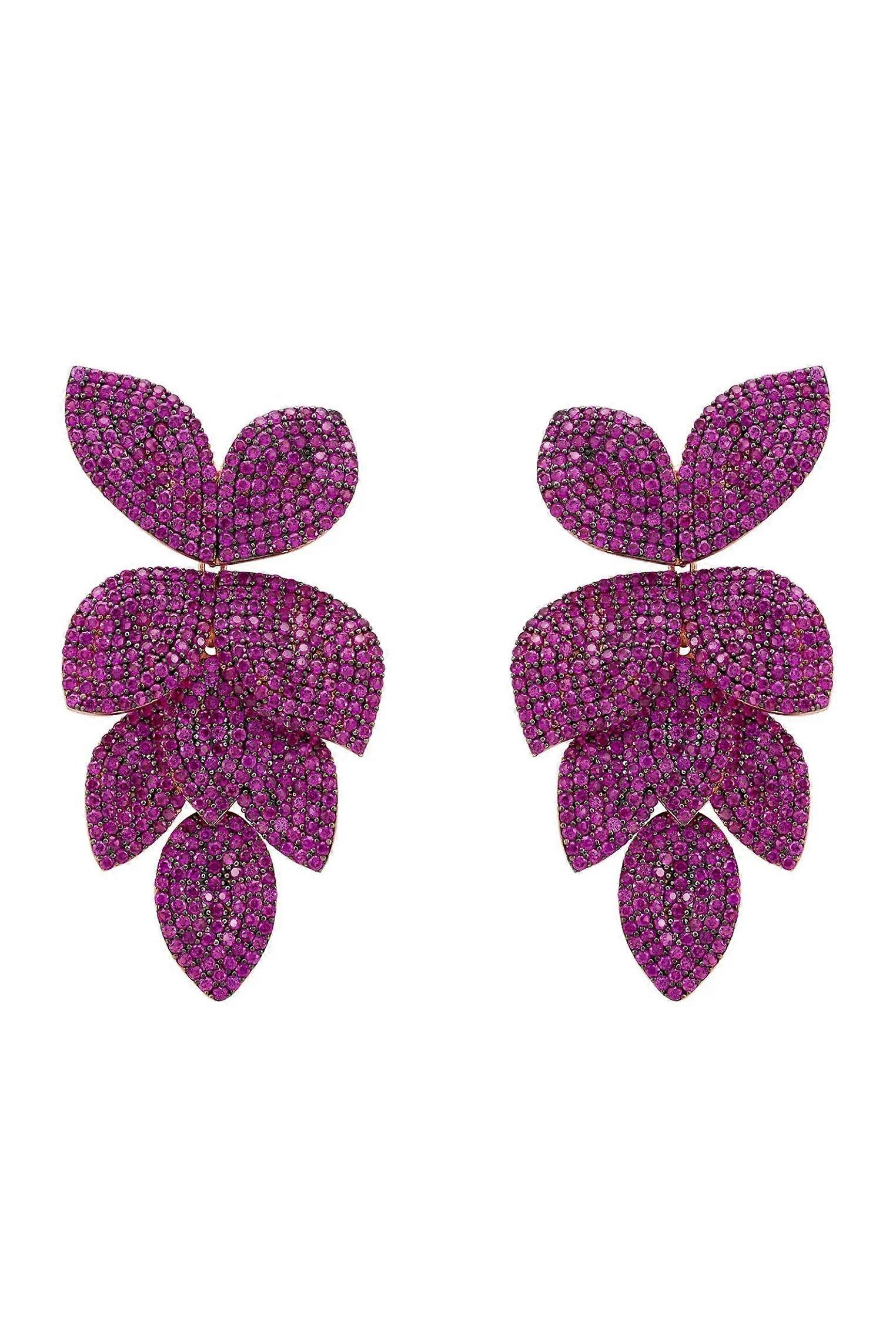 Latelita Rose Gold Petal Cascading Flower Clip On Earrings with Ruby Cz - 925 Sterling Silver - Female