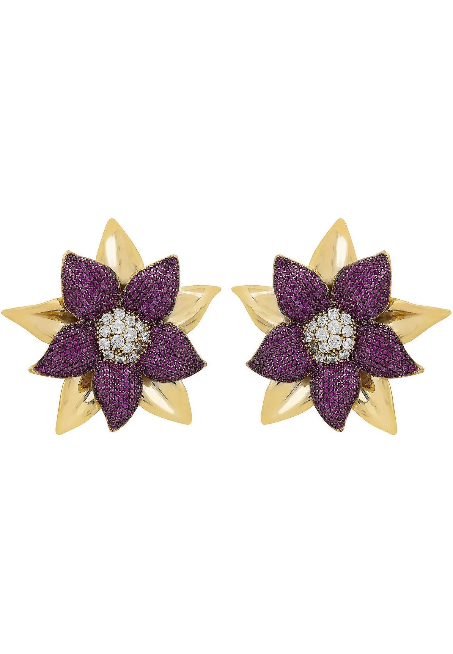 Latelita Ruby Gold Marguerite Daisy Flower Large Stud Earrings for Women - 925 Sterling Silver with Cubic Zirconia - 5.0 cm