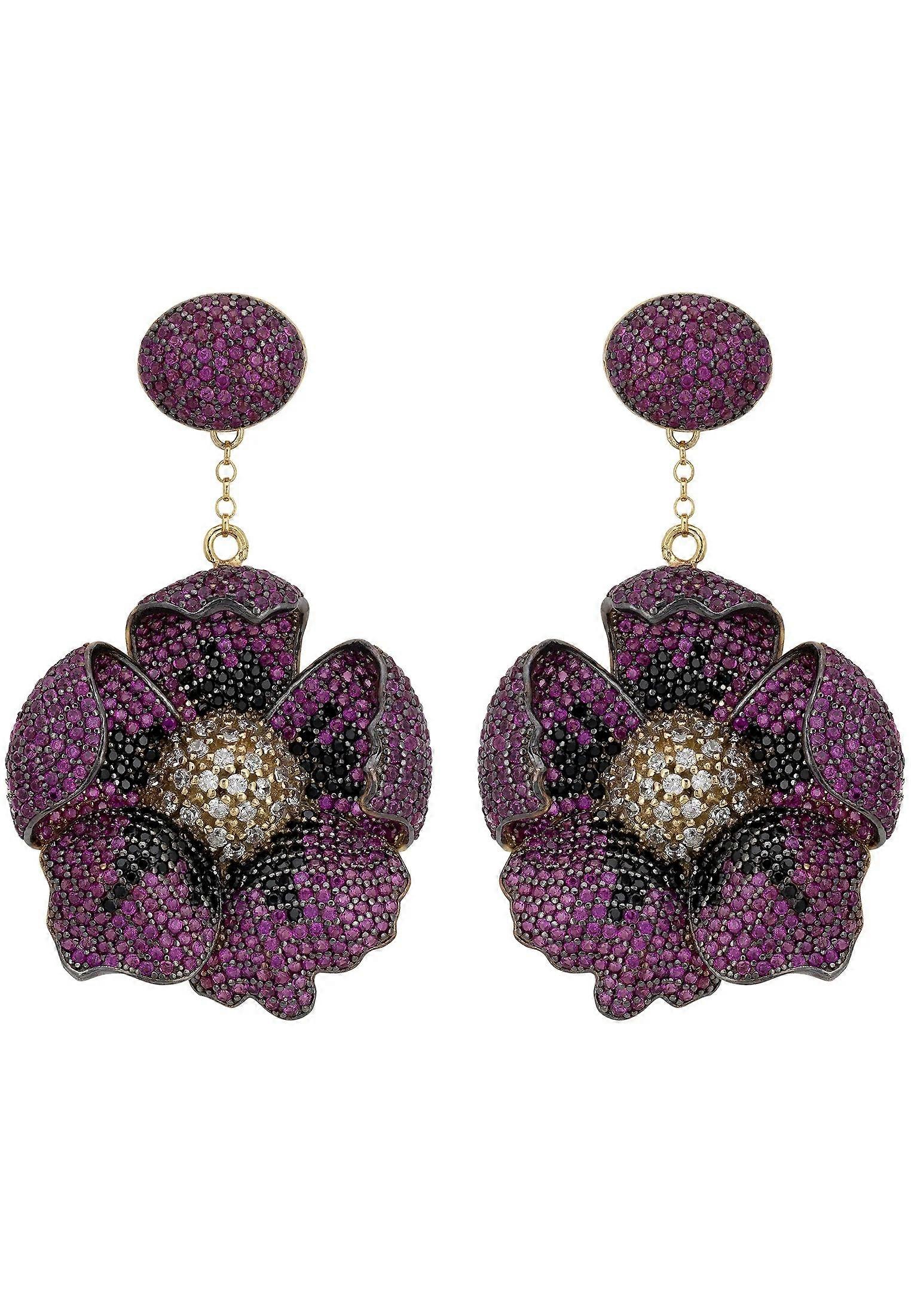 Latelita Ruby Gold Poppy Flower Drop Earrings for Women - 925 Sterling Silver with Cubic Zirconia and Zircons