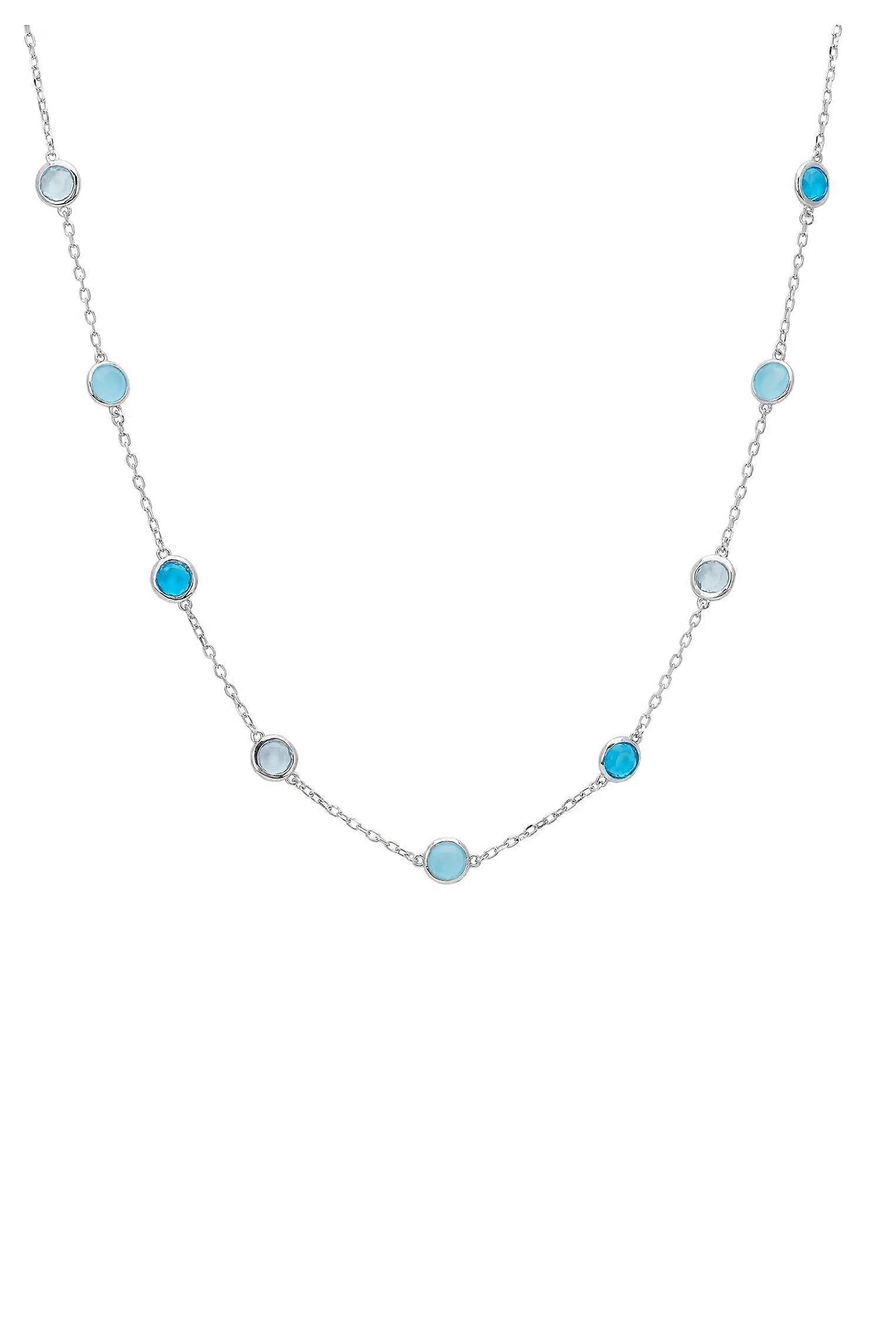 Latelita Sardinia Necklace Silver The Blues for Women - Adjustable 41-44 cm Sterling Silver Chain with Blue Topaz, Blue Chalcedony, and Swiss Blue