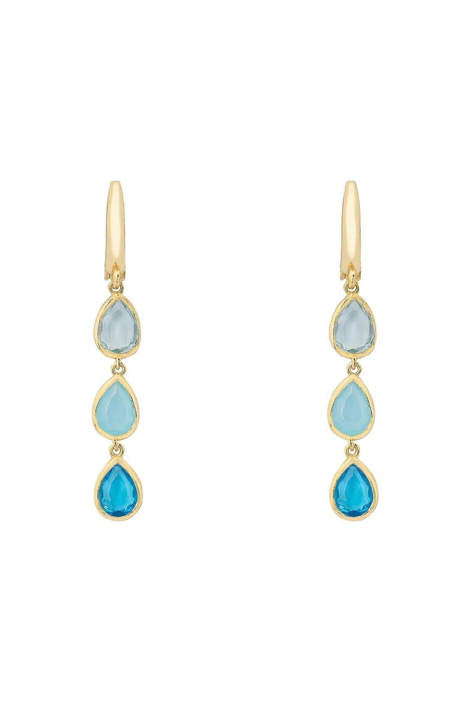 Latelita Sardinia Triple Teardrop Earrings in Gold with Blue Topaz, Blue Chalcedony, and Swiss Blue Topaz - 925 Sterling Silver