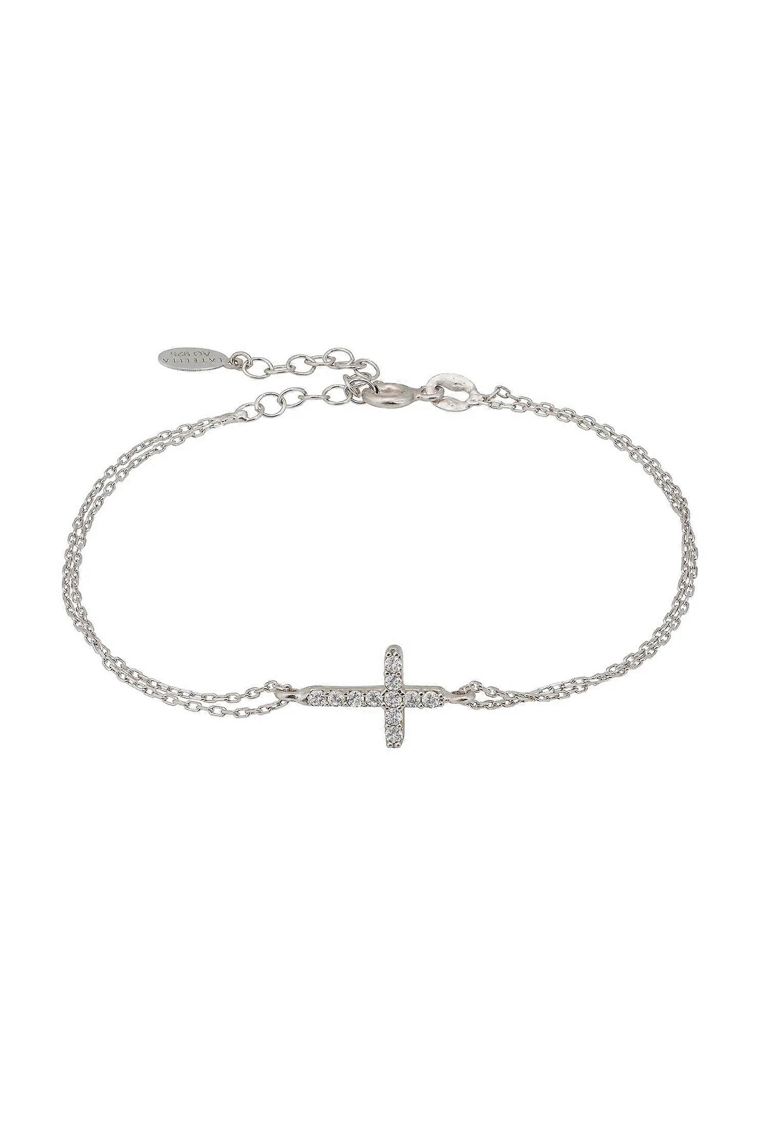 Latelita Sterling Silver Cross Charm Bracelet for Women, 17-20cm Long, Cubic Zirconia Accent, 925 Silver