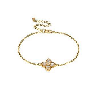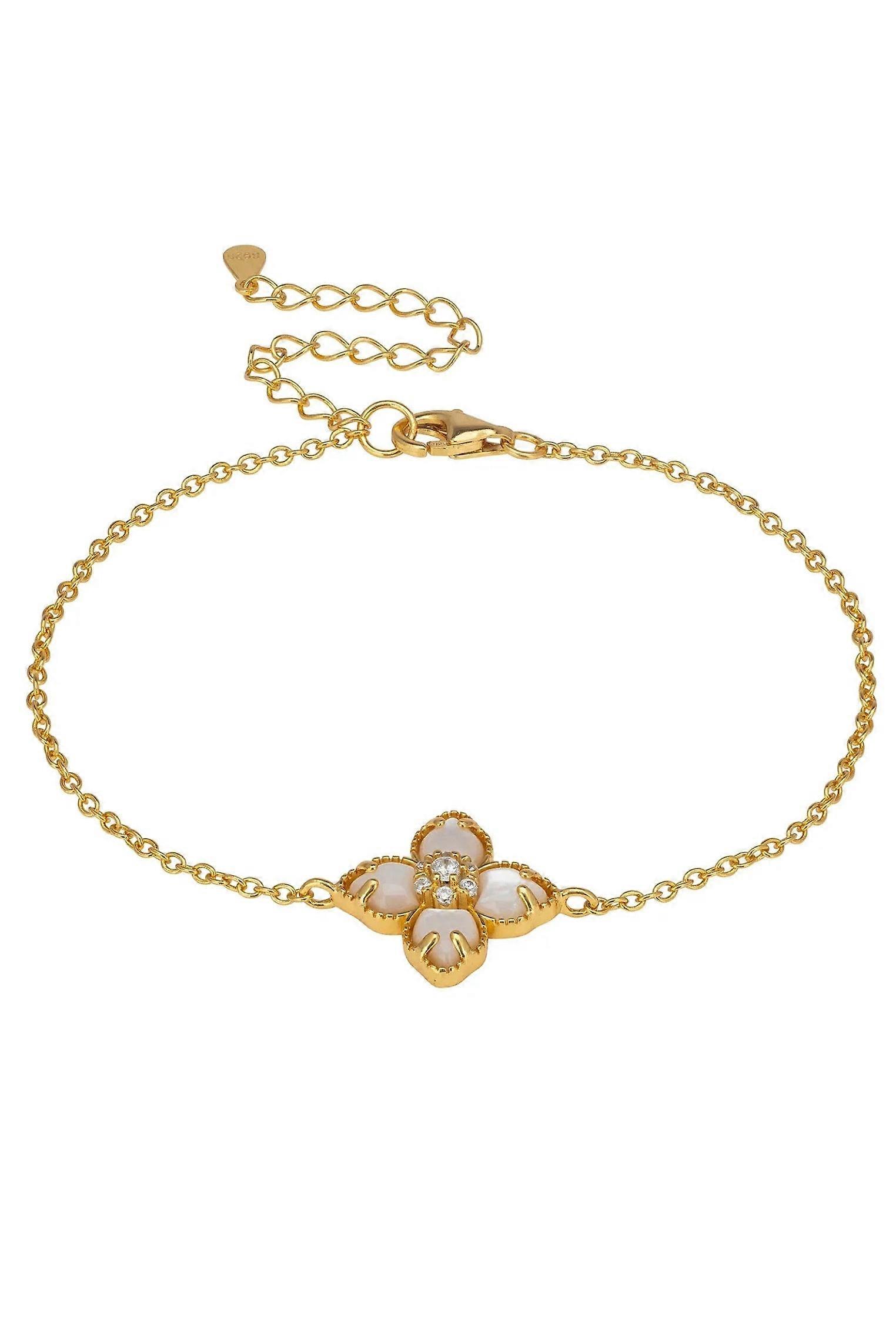 Latelita Sterling Silver Flower Clover Mother of Pearl Bracelet with 18ct Gold Plating and Cubic Zirconia - Adjustable Fit for Women