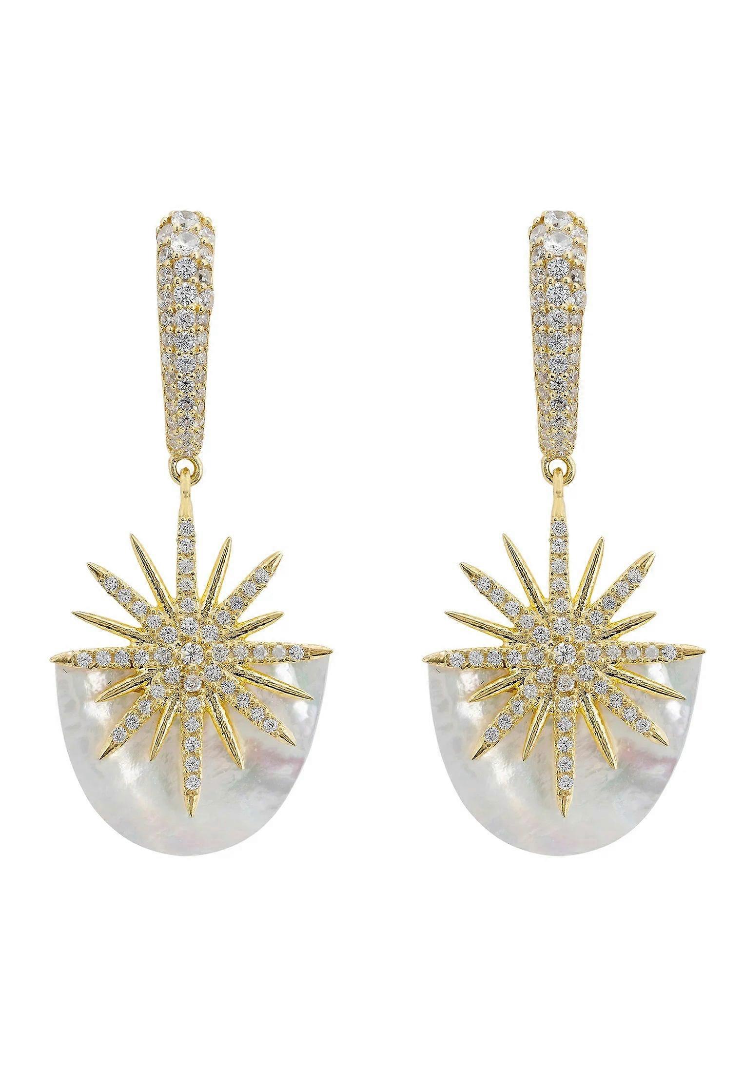 Latelita White Cz Gold Mother Of Pearl Star-Shaped Earrings for Women