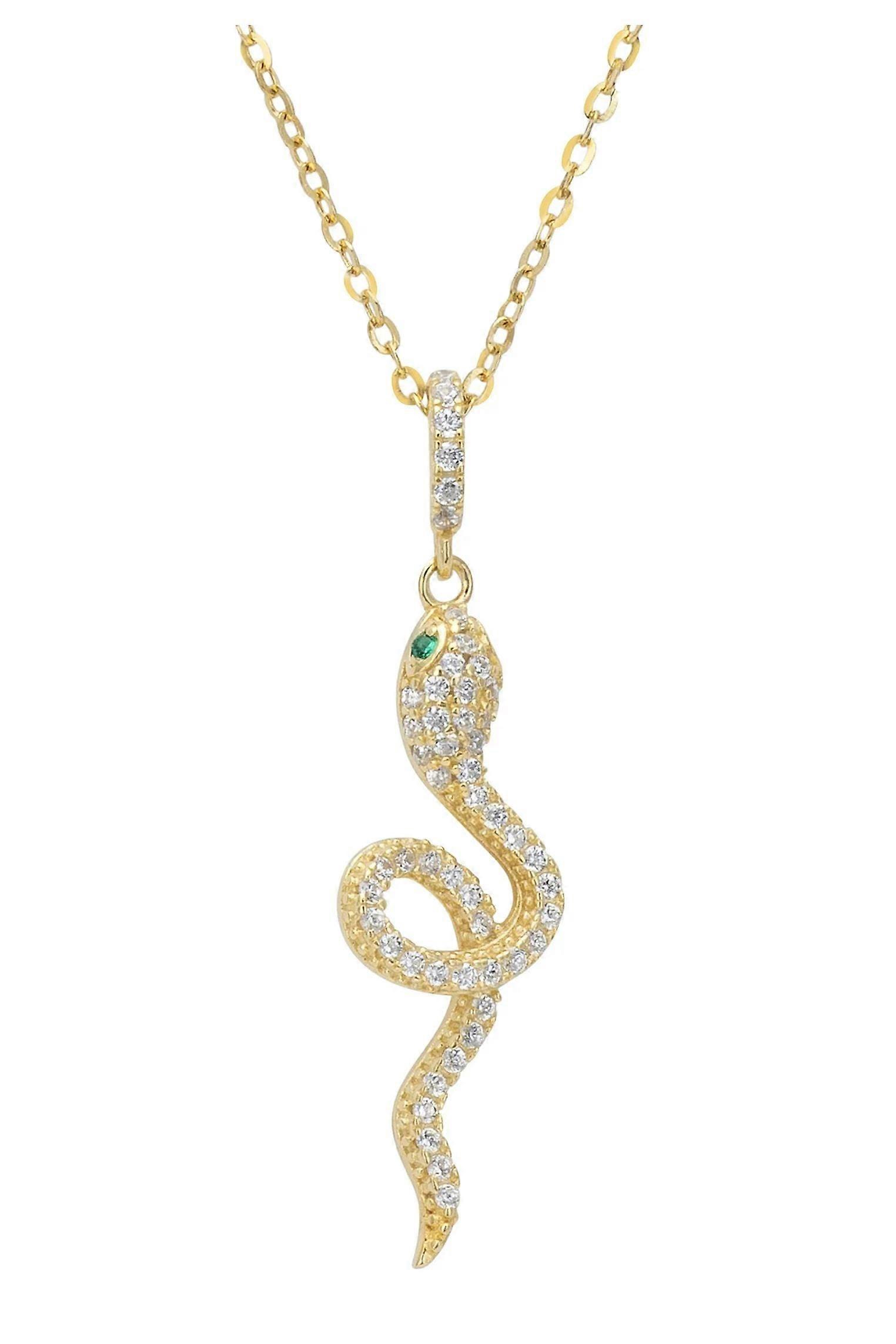Latelita Women's 18ct Gold Plated Sterling Silver Nagini Snake Pendant Necklace with Cubic Zirconia - Adjustable 40-45cm Chain