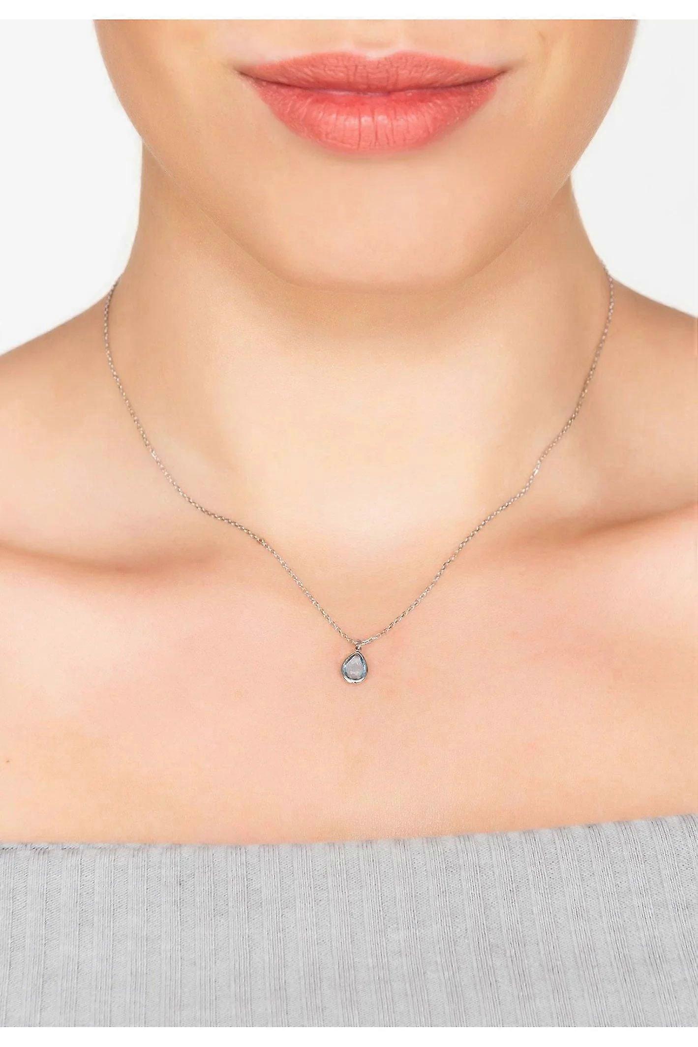 Latelita Women's 925 Silver Pisa Mini Teardrop Necklace with Blue Topaz Gemstone - Size: 40-45cm, Length: 40-45cm