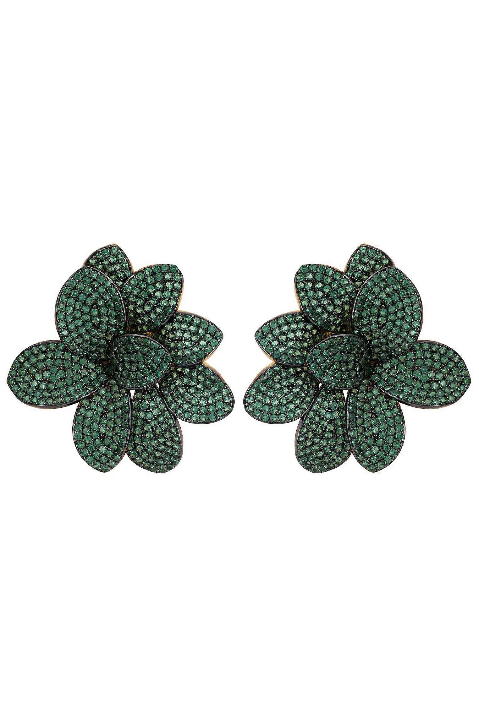 Latelita Women's 925 Sterling Silver and 18ct Gold Amaryllis Flower Large Stud Earrings with Emerald Green Cubic Zirconia - Gold Emerald - Size 3.5 x