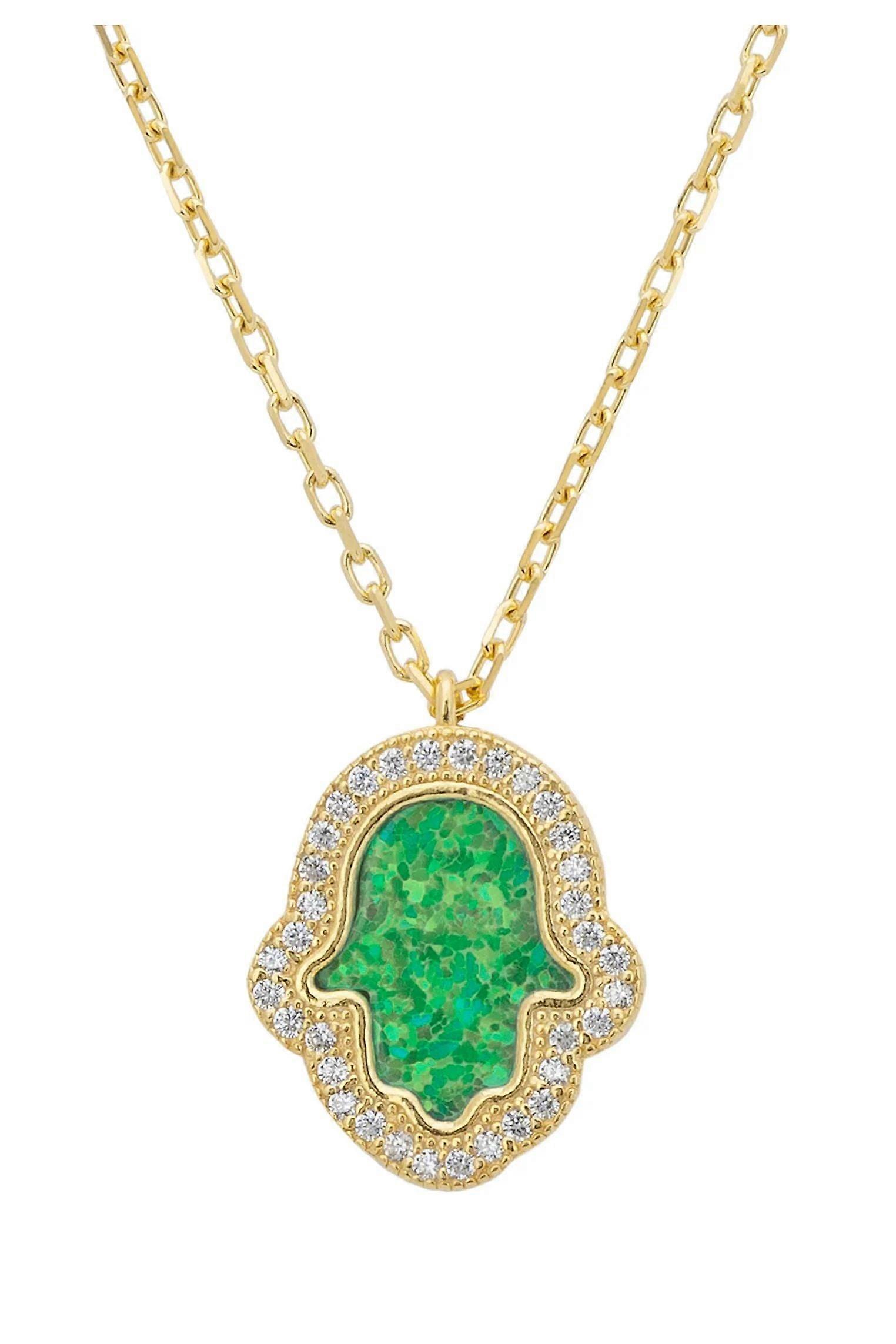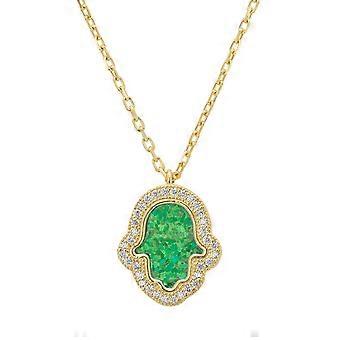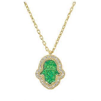 Latelita Women's 925 Sterling Silver and 18ct Gold Hamsa Charm Necklace with Green Opalite - 40-45 cm