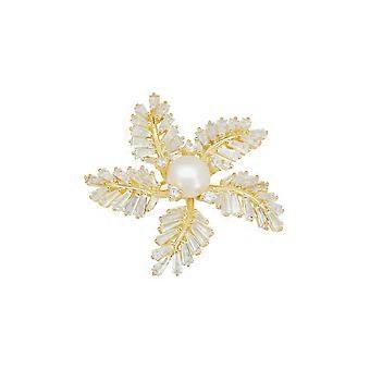 Latelita Women's 925 Sterling Silver and 18ct Gold Star-Shaped Brooch with Baguette-Cut Zirconia and Majorica Pearl - Gold - 4.0 cm