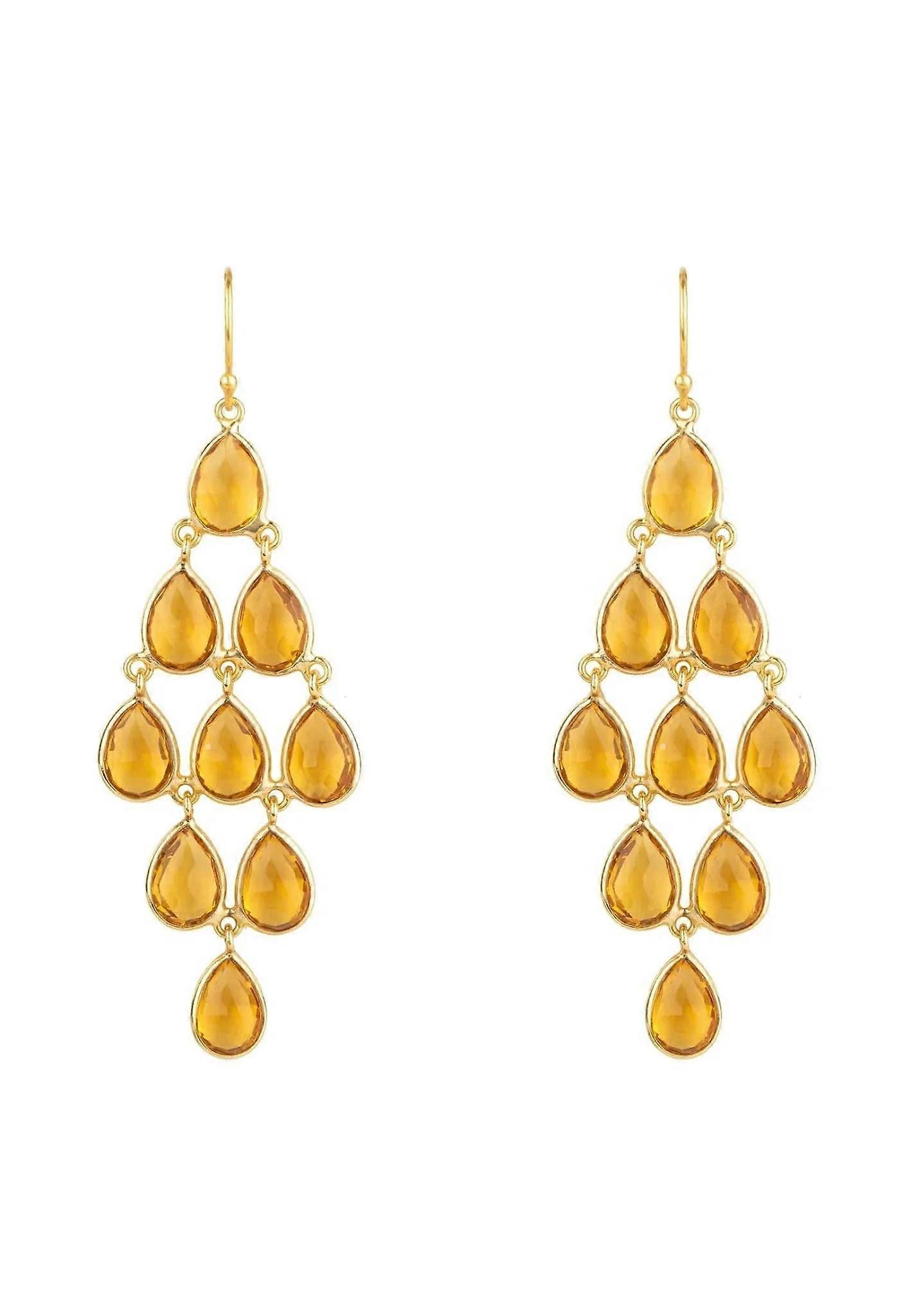 Latelita Women's 925 Sterling Silver and Gold-Dipped Citrine Gemstone Cascade Earrings - 8.5cm x 3.2cm