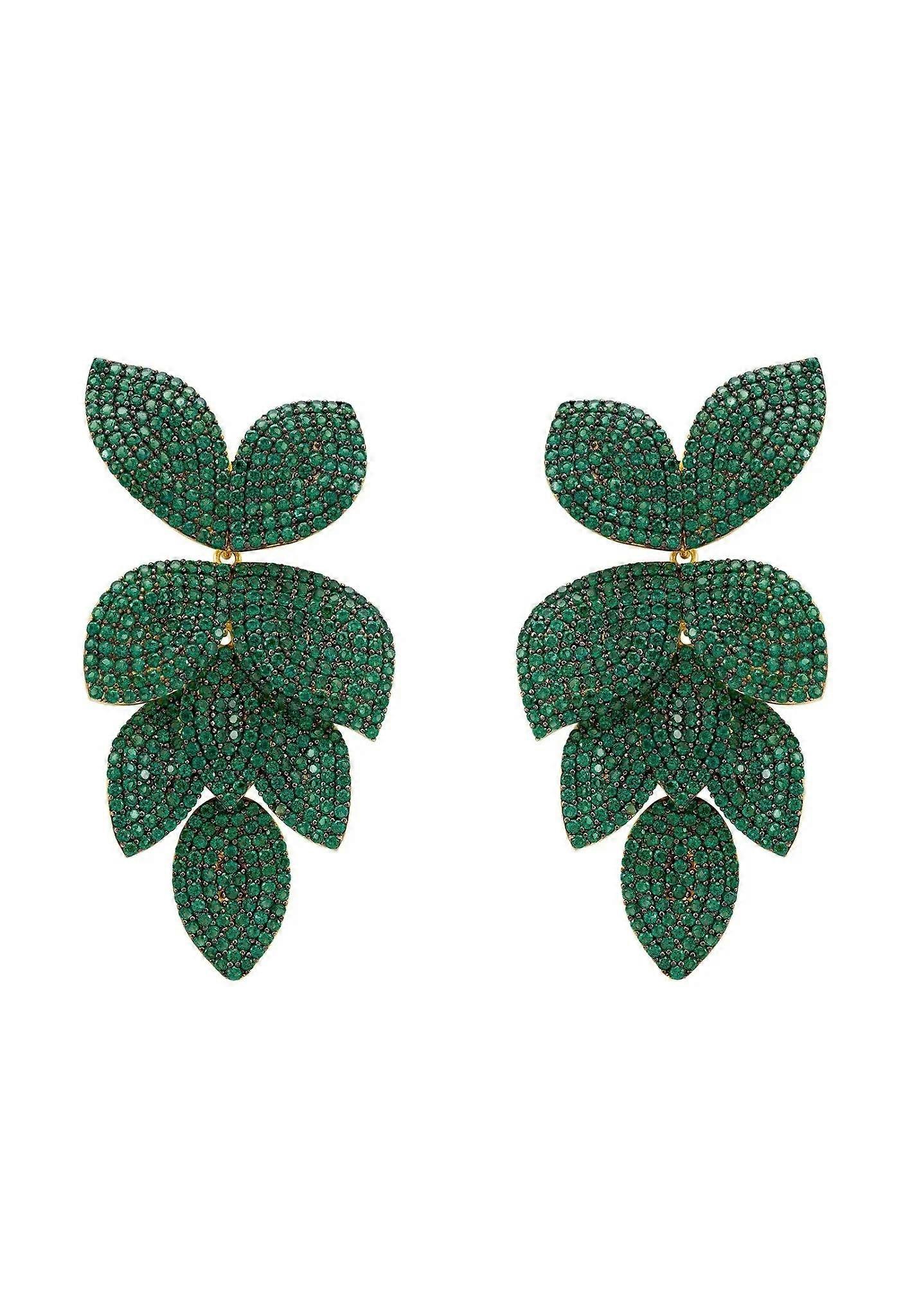 Latelita Women's 925 Sterling Silver Cascading Flower Earrings with Emerald Green Cubic Zirconia - 5.5cm Long