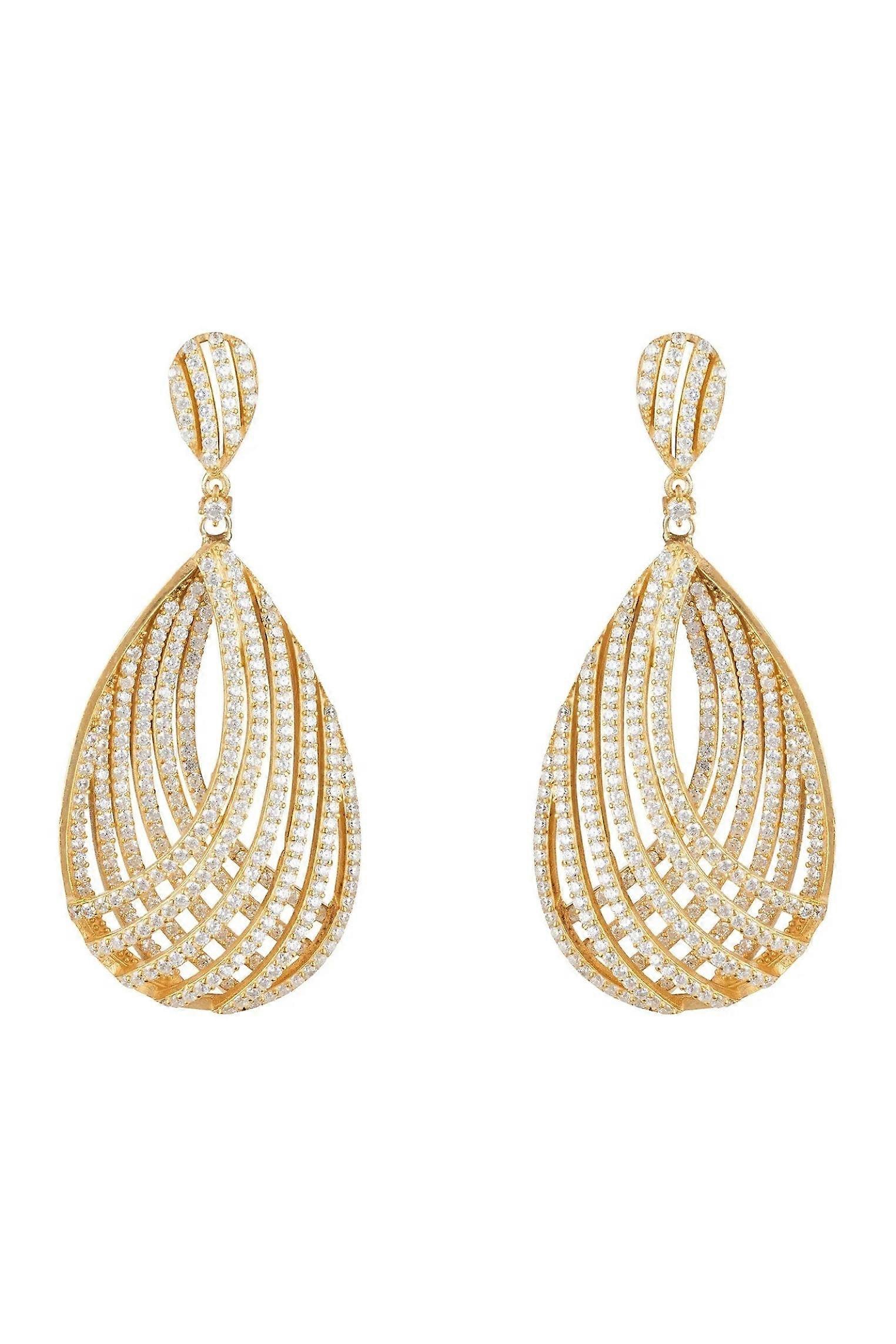 Latelita Women's 925 Sterling Silver Dipped Gold Teardrop Clip On Earrings with Zircon Details - 5.5 cm