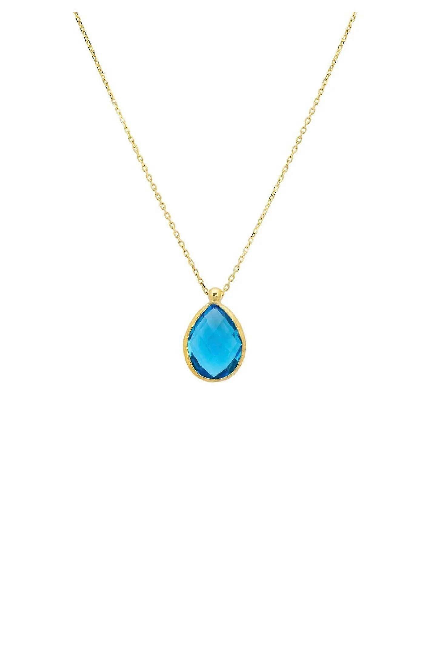 Latelita Women's 925 Sterling Silver Drop Necklace with Blue Topaz Gemstone - Gold Finish