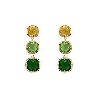 Latelita Women's 925 Sterling Silver Gold-Dipped Earrings with Lab-Created Emerald, Peridot, and Citrine Stones - 4cm Length