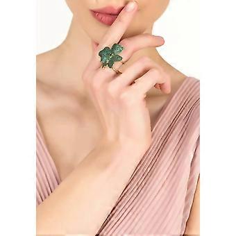 Latelita Women's 925 Sterling Silver Gold Dipped Flower Cocktail Ring with AAA Grade Emerald Green Cubic Zirconia - One Size