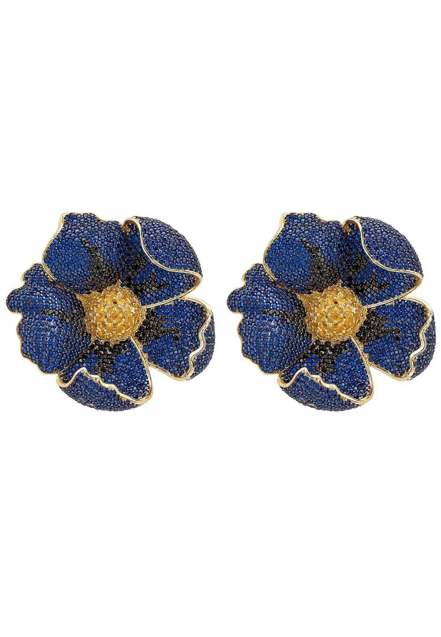 Latelita Women's 925 Sterling Silver Gold-Dipped Poppy Sapphire Blue Earrings with Cubic Zirconia - 4.2cm