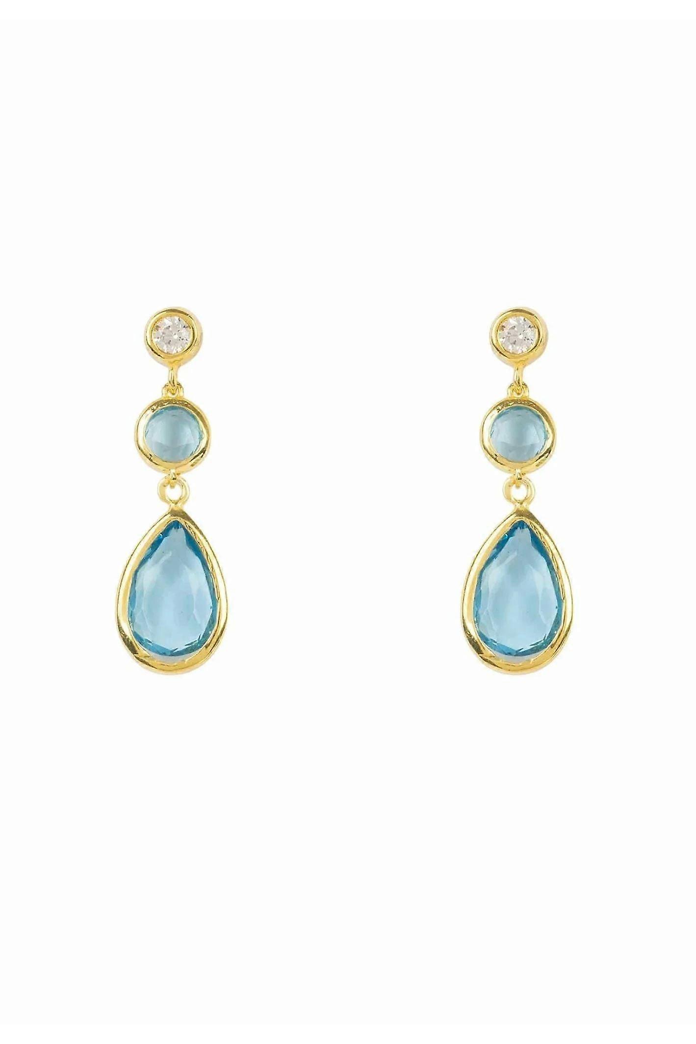Latelita Women's 925 Sterling Silver Gold-Plated Blue Topaz Drop Earrings - 6mm Wide, 2.5cm Long, 2g - Birthstone for December