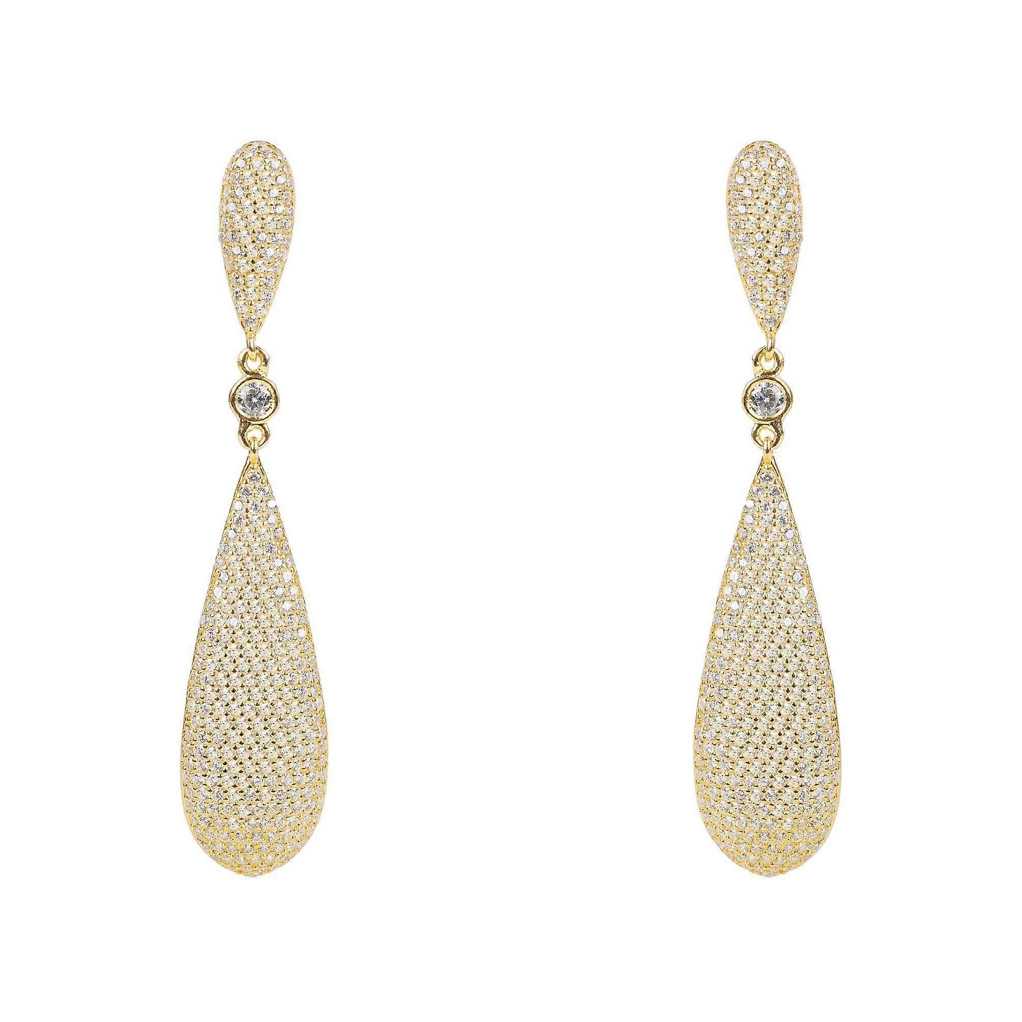 Latelita Women's 925 Sterling Silver Gold-Plated Long Drop Earrings with Cubic Zirconia Stones - Size: 5cm x 1cm
