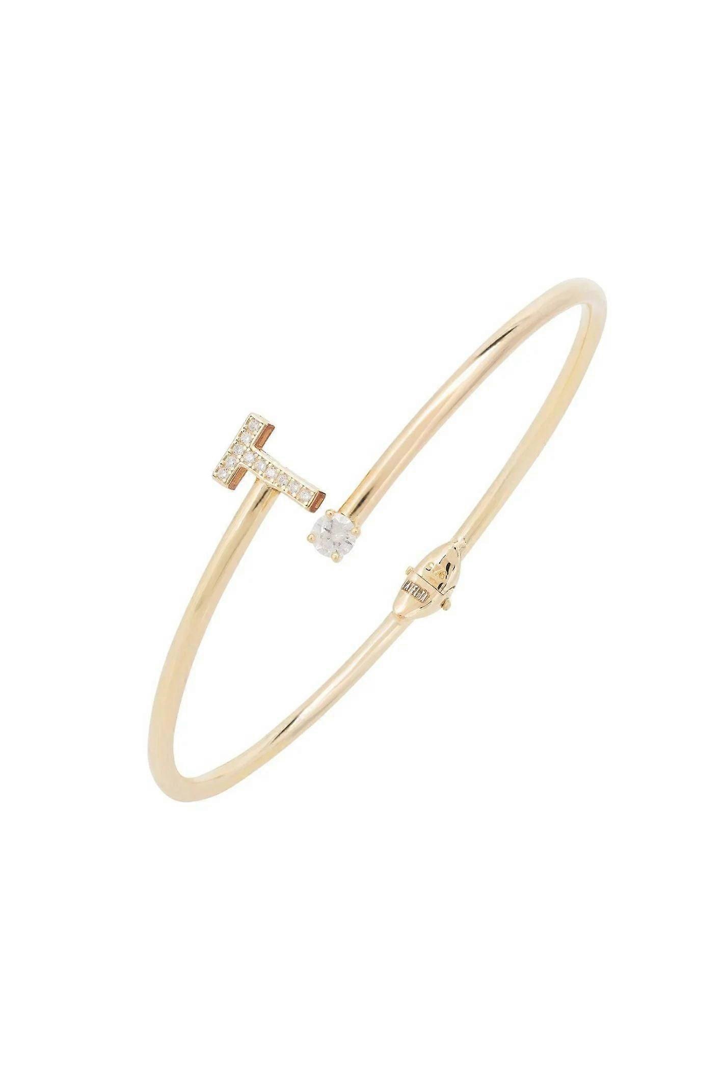 Latelita Women's 925 Sterling Silver Initial Bangle with 22ct Gold Dipped and White Cubic Zirconia - Gold