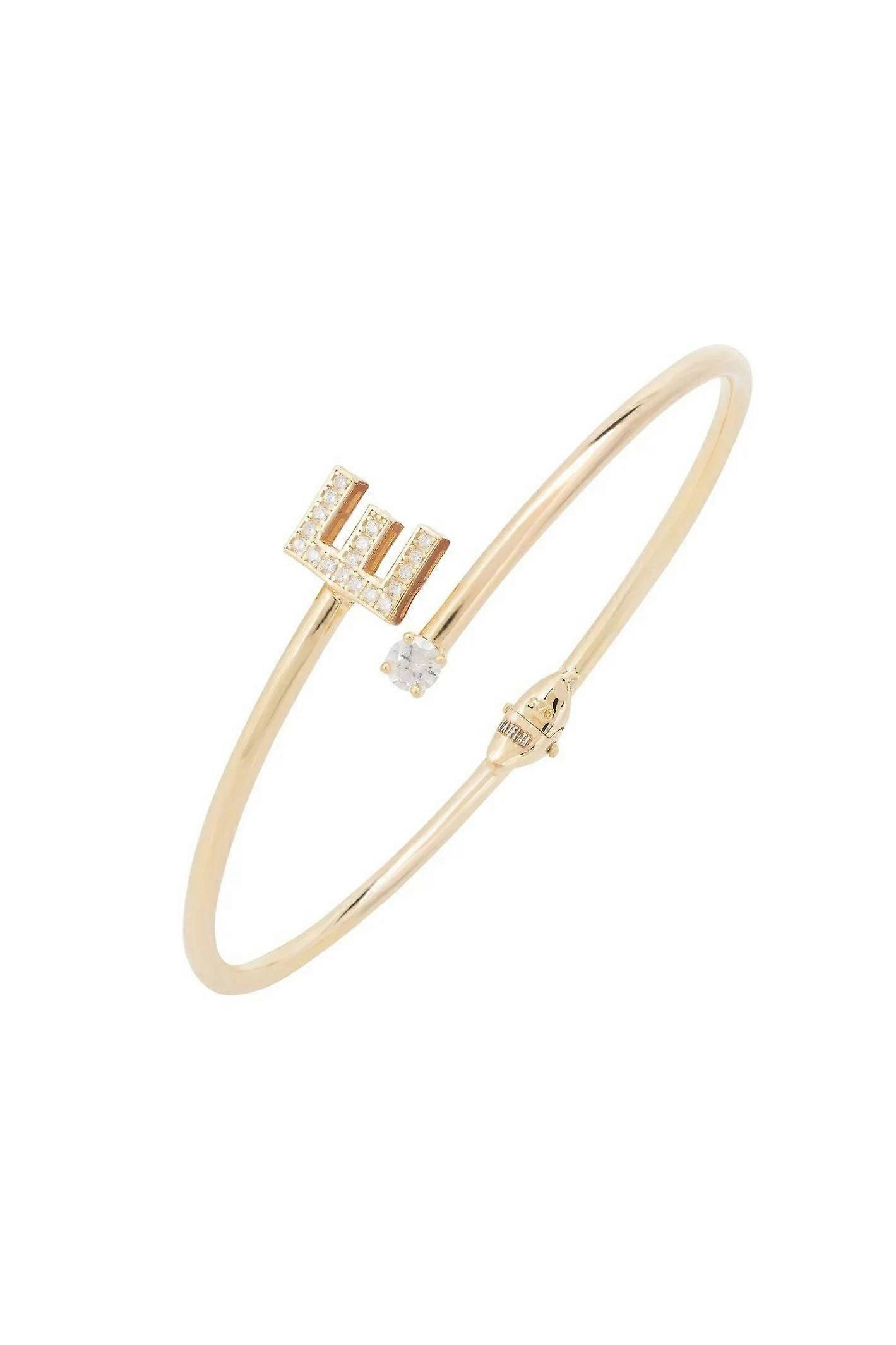 Latelita Women's 925 Sterling Silver Initial Bangle with 22ct Gold Dipped and White Cubic Zirconia - Gold