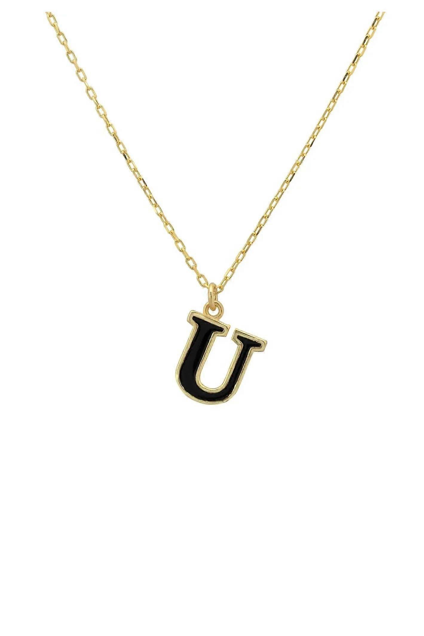 Latelita Women's 925 Sterling Silver Initial Enamel Pendant Necklace in 22ct Gold - Adjustable 40cm Length