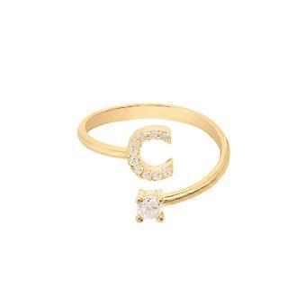 Latelita Women's 925 Sterling Silver Initial Ring with 22ct Gold Dipped and White Cubic Zirconia - Average size 6 (M) for Women