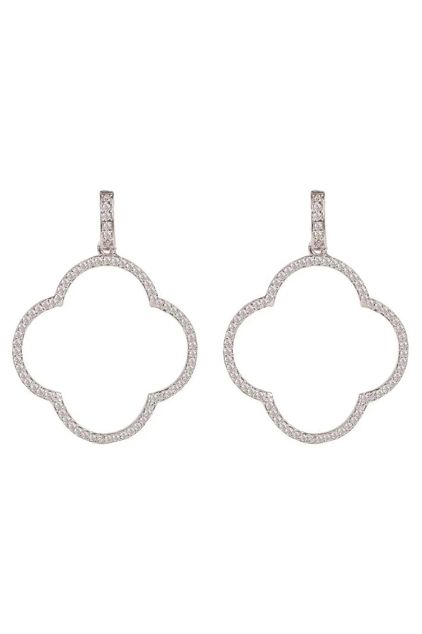 Latelita Women's 925 Sterling Silver Open Clover Large Drop Earrings with White Cubic Zirconia - Size: 4cm x 3.5cm