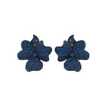 Latelita Women's 925 Sterling Silver Plated with 22ct Gold Flower Stud Earrings with Sapphire Blue Cubic Zirconia - Size: 3.2cm x 3.2cm
