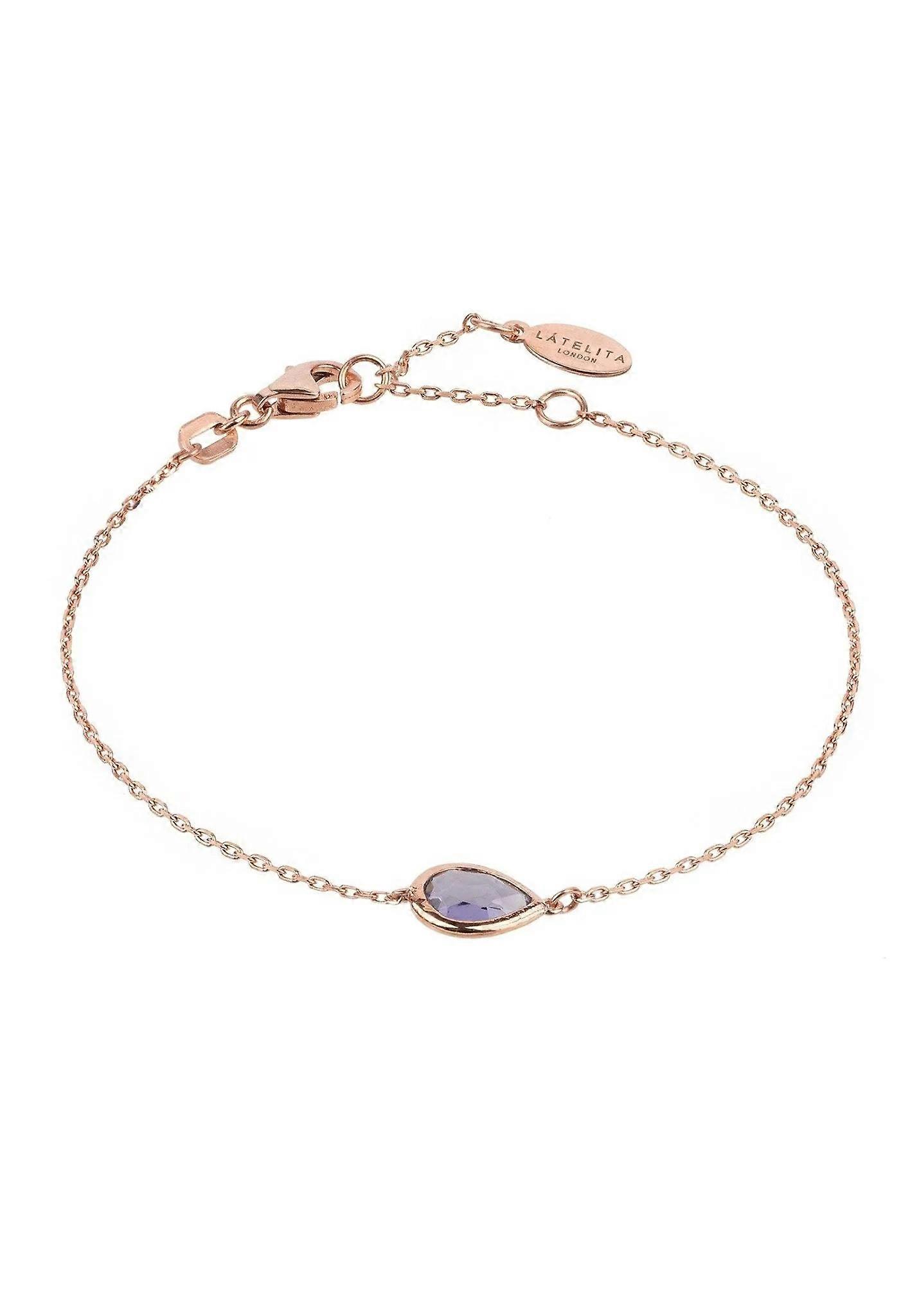 Latelita Women's 925 Sterling Silver Rosegold Amethyst Teardrop Bracelet (15-17.5cm)