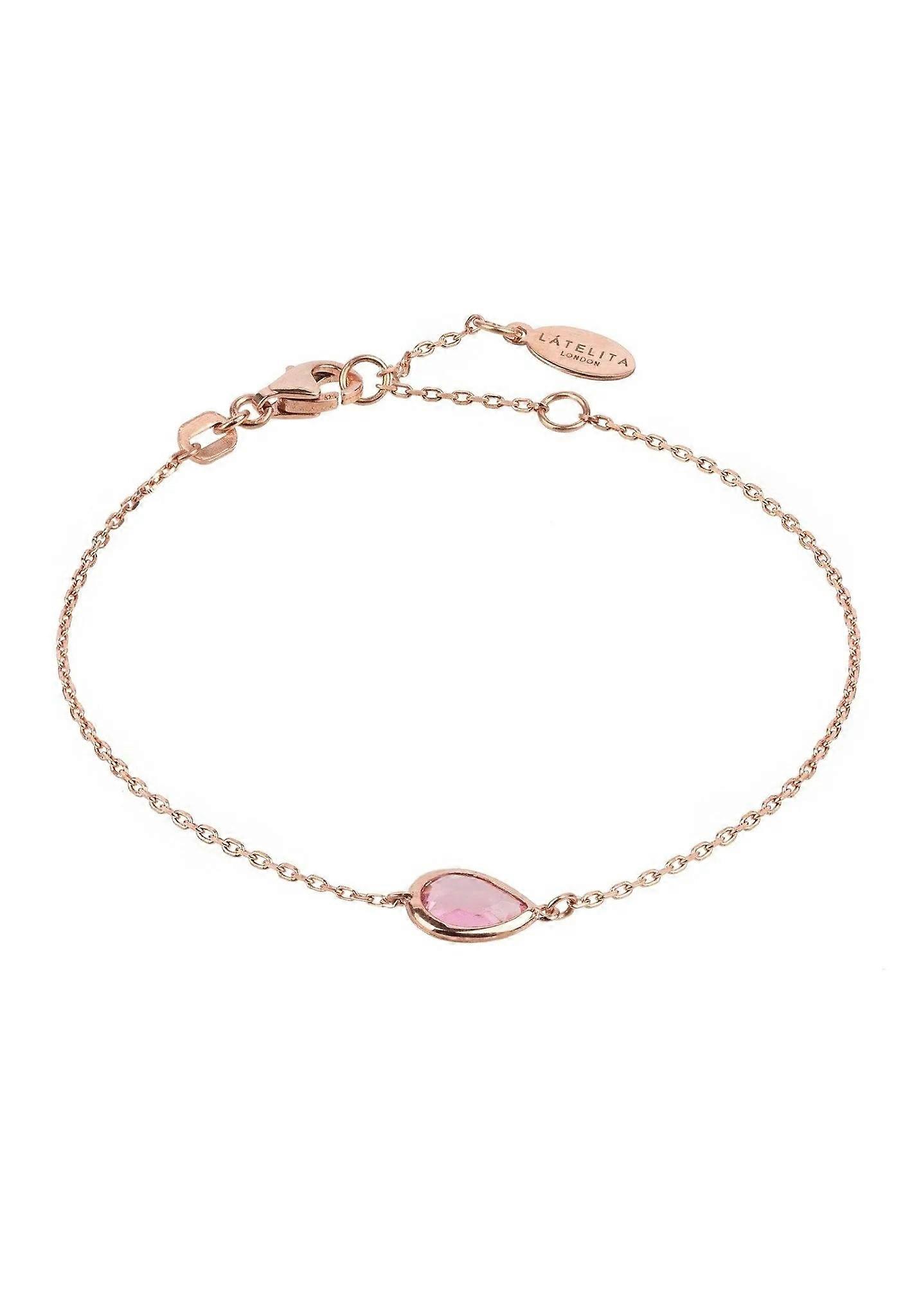 Latelita Women's 925 Sterling Silver Rosegold Pink Tourmaline Teardrop Bracelet (15-17.5cm)