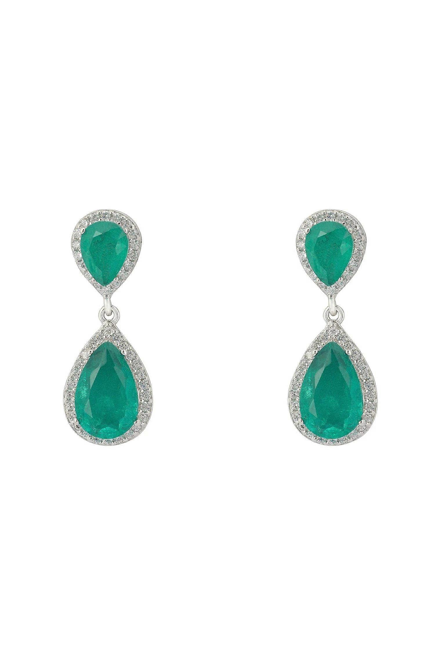Latelita Women's 925 Sterling Silver Teardrop Earrings with Lab-Created Colombian Emerald and Zirconia - Silver