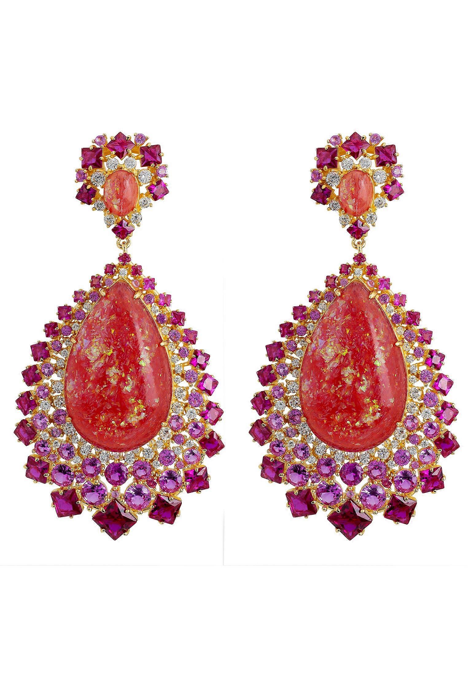 Latelita Women's Gold Gabriela Opal Drop Earrings with Pink Tourmaline and Zircons - 925 Sterling Silver