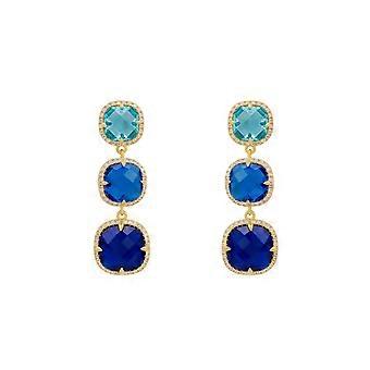 Latelita Women's Gold-Plated Swiss Blue and London Blue Topaz Statement Earrings with Sapphire and Cubic Zirconia Accents - 4cm Length