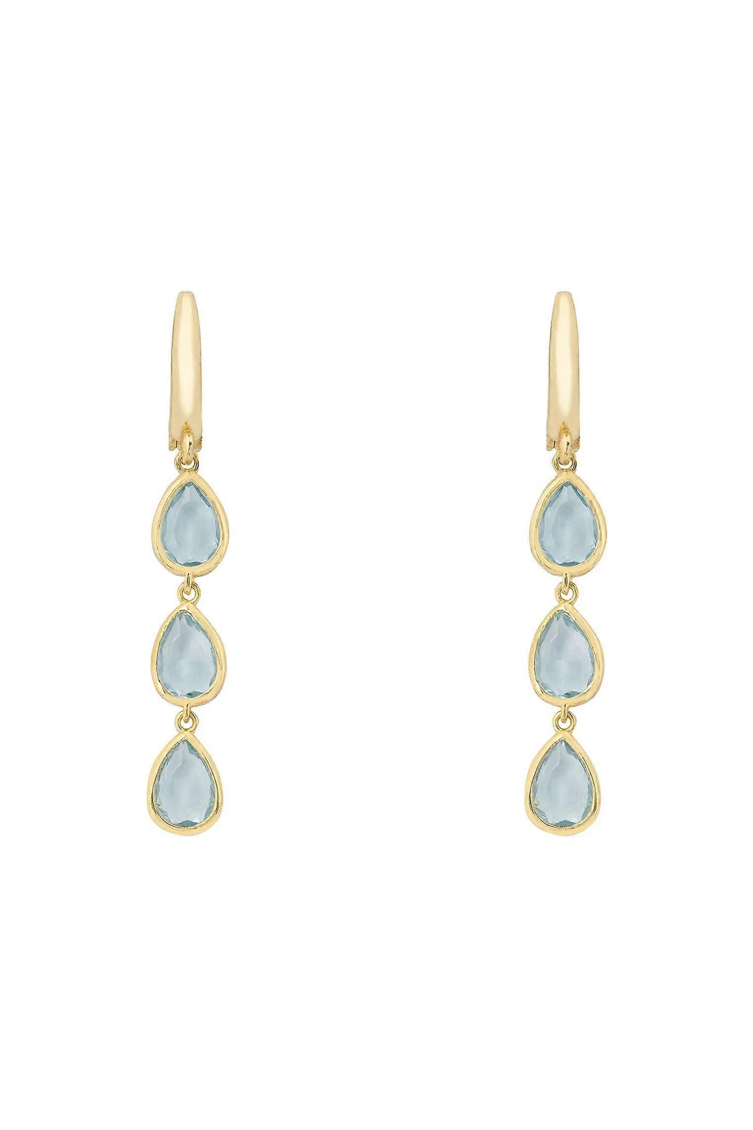 Latelita Women's Gold Triple Teardrop Earrings with Blue Topaz - 925 Sterling Silver, 18k Gold Coating, 4cm Length, 2.25g Weight